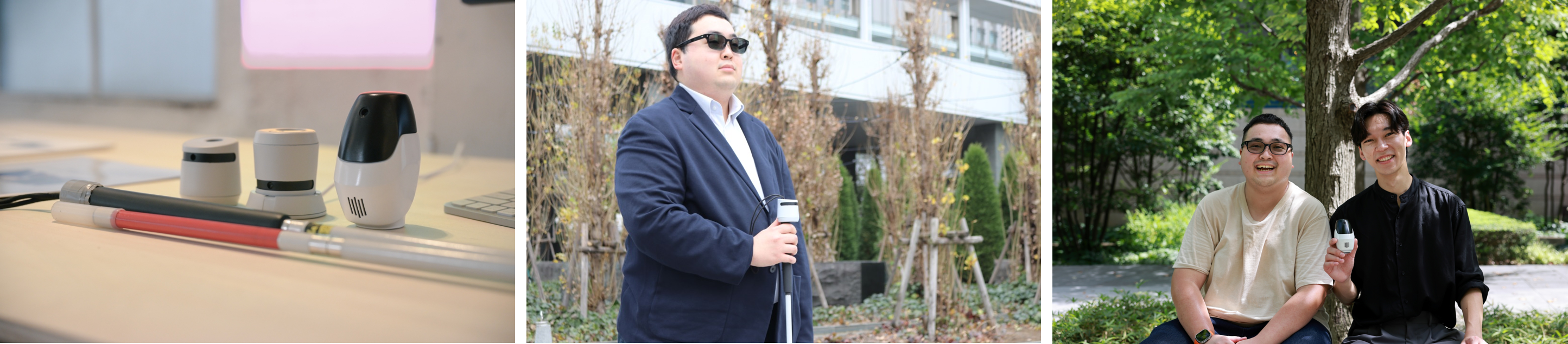 ※写真上: 視覚障害のある人が安心して横断歩道を渡るための歩行者用信号認識プロダクト「AISIG」
