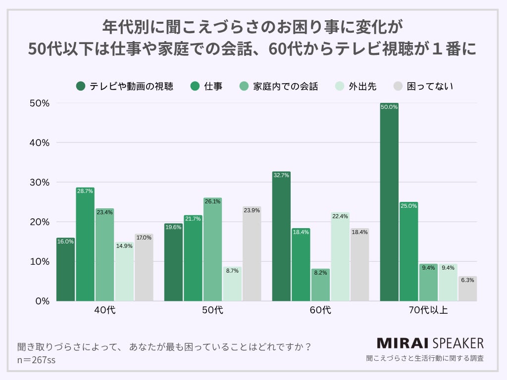 ◆聞こえづらさで最も困るのは「テレビ視聴」─ 年齢とともに変化する“聞こえの困りごと”