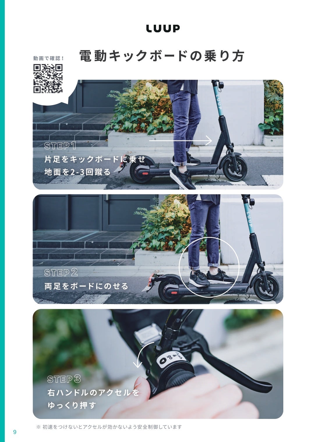 安心・安全に電動キックボードをご利用いただくために、全ページをWeb上で公開