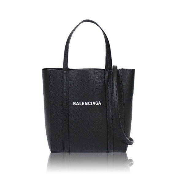 バレンシアガのエブリデイトートは、シボ加工が施されたブラックレザーに、「BALENCIAGA」ロゴが大胆に配されたトートバッグです。細身のトップハンドルとオープンな開口部が特徴で、シンプルながらもモダンでクリーンな印象を与えます。普段使いにぴったりのサイズ感と、どんなスタイルにも合わせやすいミニマルなデザインが魅力で、日常の必需品をスマートに持ち運べます。