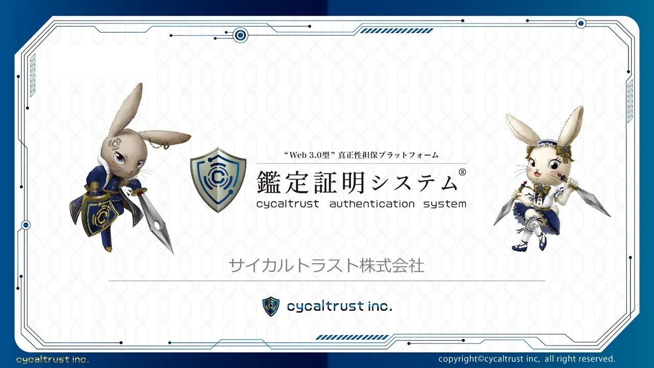 サイカルトラストは、経済安全保障推進法の重要性を踏まえ、革新的な「Web3 × AI」ベースの真正性(真贋性)担保エコシステム「鑑定証明システム」について展示いたします。当該システムは、重要インフラやサプライチェーンのセキュリティ強化に役立つもので、国内外の重要インフラ保護に貢献することを目指しています。