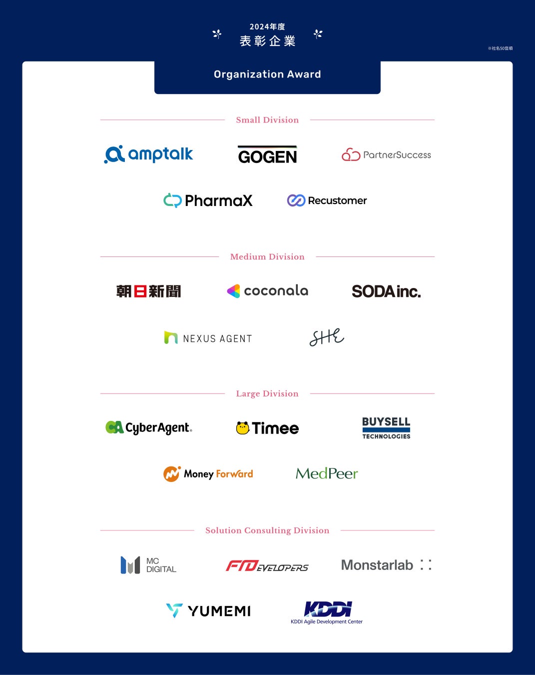 株式会社ドクターズプライム、株式会社Hacobu「MOVO Vista開発チーム」、株式会社viviON「Ci-enチーム」、株式会社ワンキャリア「共通基盤開発チーム」、合同会社DMM.com「アカウントサービスグループ」
