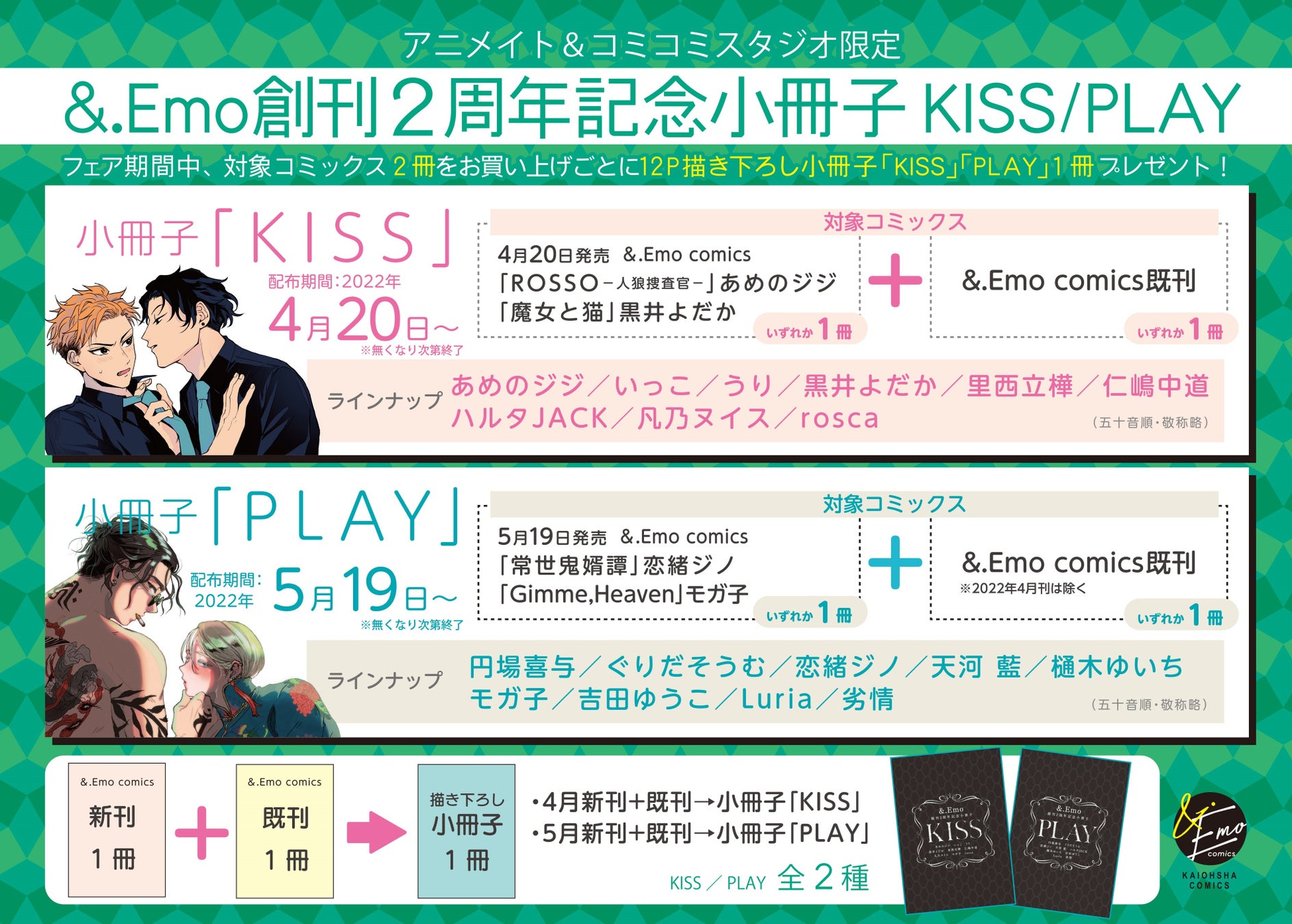 海王社のBLレーベル『&.Emo』創刊2周年フェア開催!本日4月20日(木)より、全国のアニメイト・コミコミスタジオにて12P描き下ろし小冊子をプレゼント!