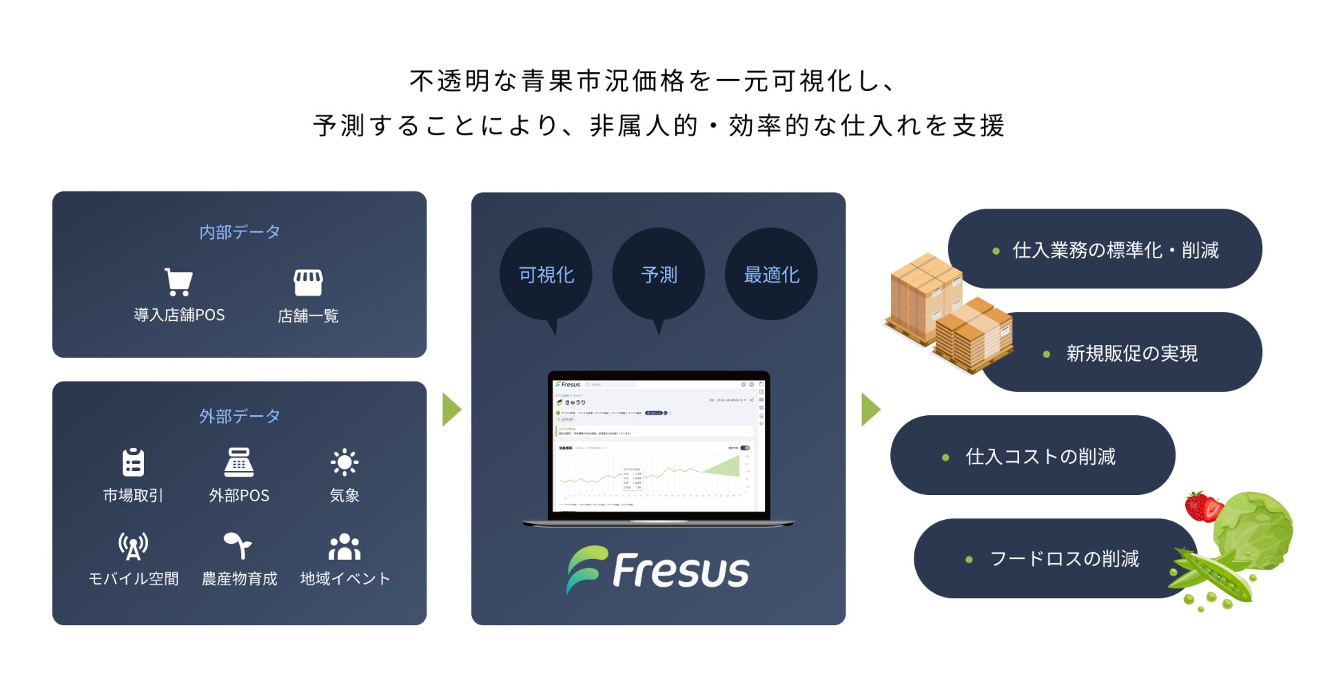 青果物のデータを統合し、現在価格の可視化・将来価格の予測で、流通や仕入れのロスを解消 リアルタイムな販促を実現する『Fresus』β版の事前登録を5月11日(水)より開始