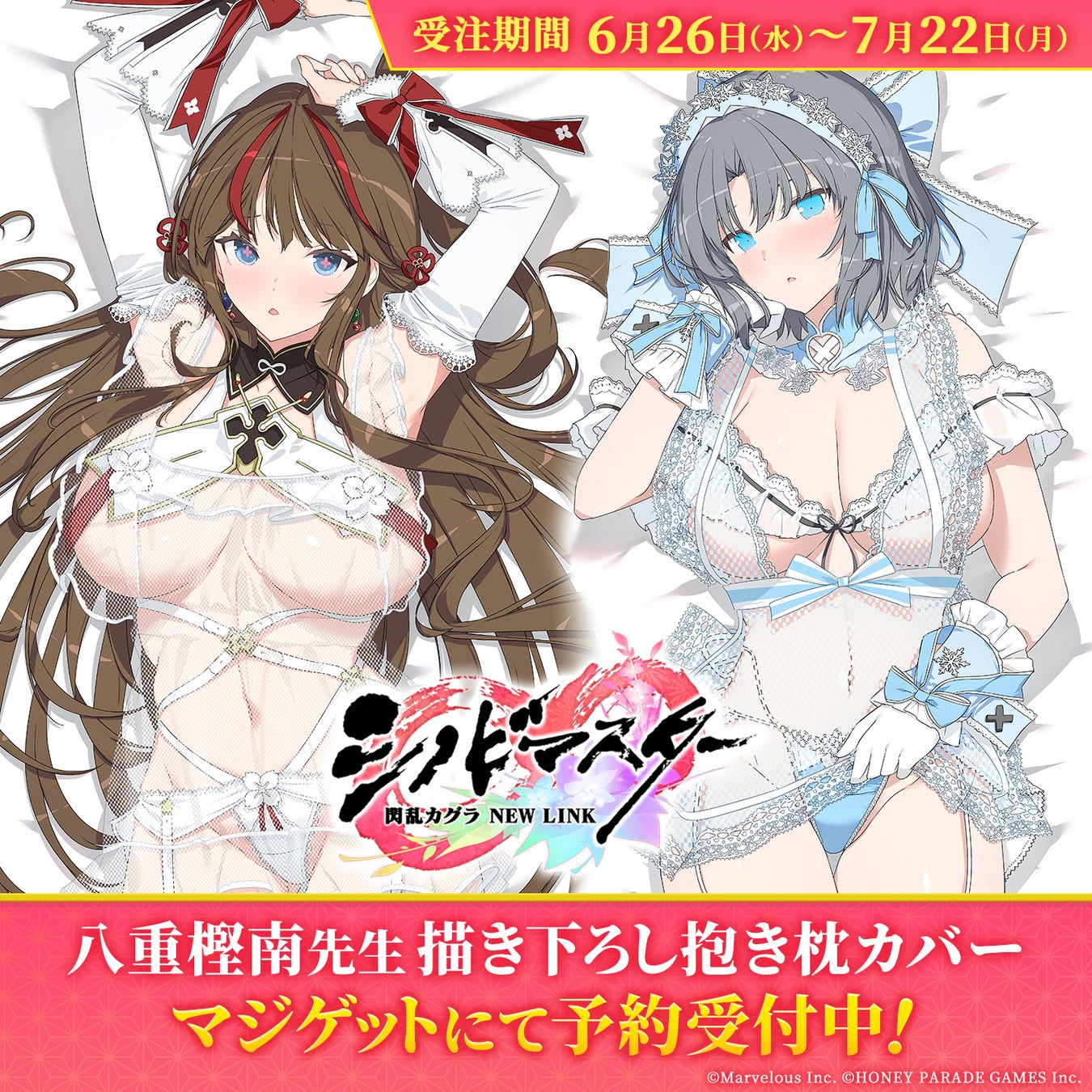 株式会社MAGES.は、6月26日(水)12時00分(正午)から7月22日(月)16時00分にかけて、ゲーム・アニメ等のキャラクターグッズ総合通販ショップ『マジゲット』にて、爆乳ハイパーチームバトルアプリゲーム『シノビマスター 閃乱カグラ NEW LINK』より、6周年記念総選挙で見事二年連続第1位の座に輝いた「鴇」と、第2位「雪泉」の、八重樫南先生描き下ろし抱き枕&フレグランスミストを受注販売しますことをお知らせします。
