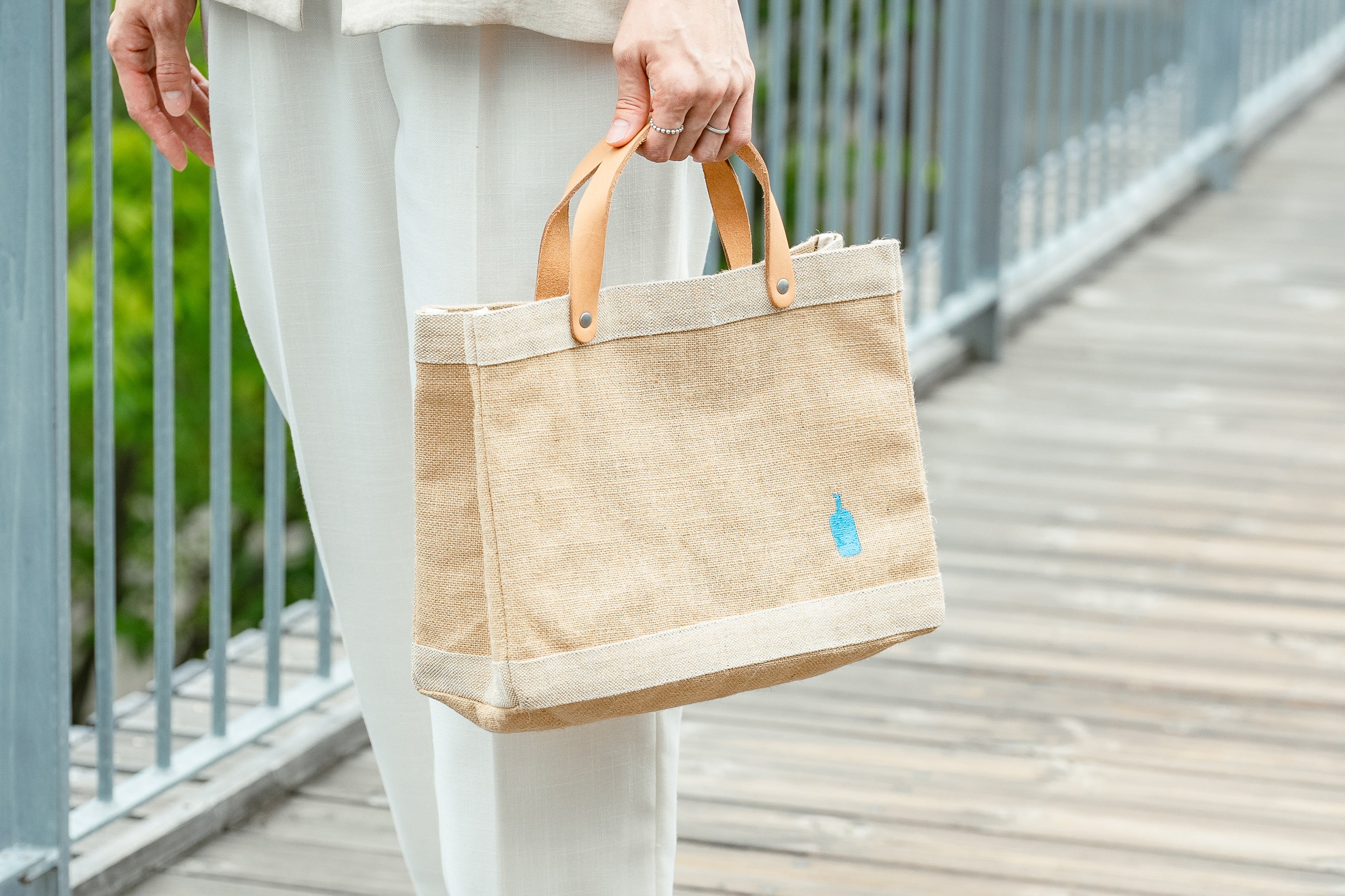 サステナブルで耐久性に優れたナチュラルゴールデンジュート(麻)を使用して制作したランチバッグ。2021年に”Global Citizen(地球の市民)”をブランドフィロソフィーとして掲げるアメリカ・ロサンゼルスのブランド APOLIS(アポリス)とコラボレートして制作したこちらのバッグを、心斎橋カフェオープンを記念し、リバイバルアイテムとして限定発売いたします。ナチュラルで使い込むほどに風合いが増す天然素材の魅力と、内側に施したビニールコーティングによる耐水性も兼ね備えたバッグです。毎日のショッピングやランチタイムのテイクアウト用バッグとしてはもちろん、ピクニックやアウトドアにもおすすめです。