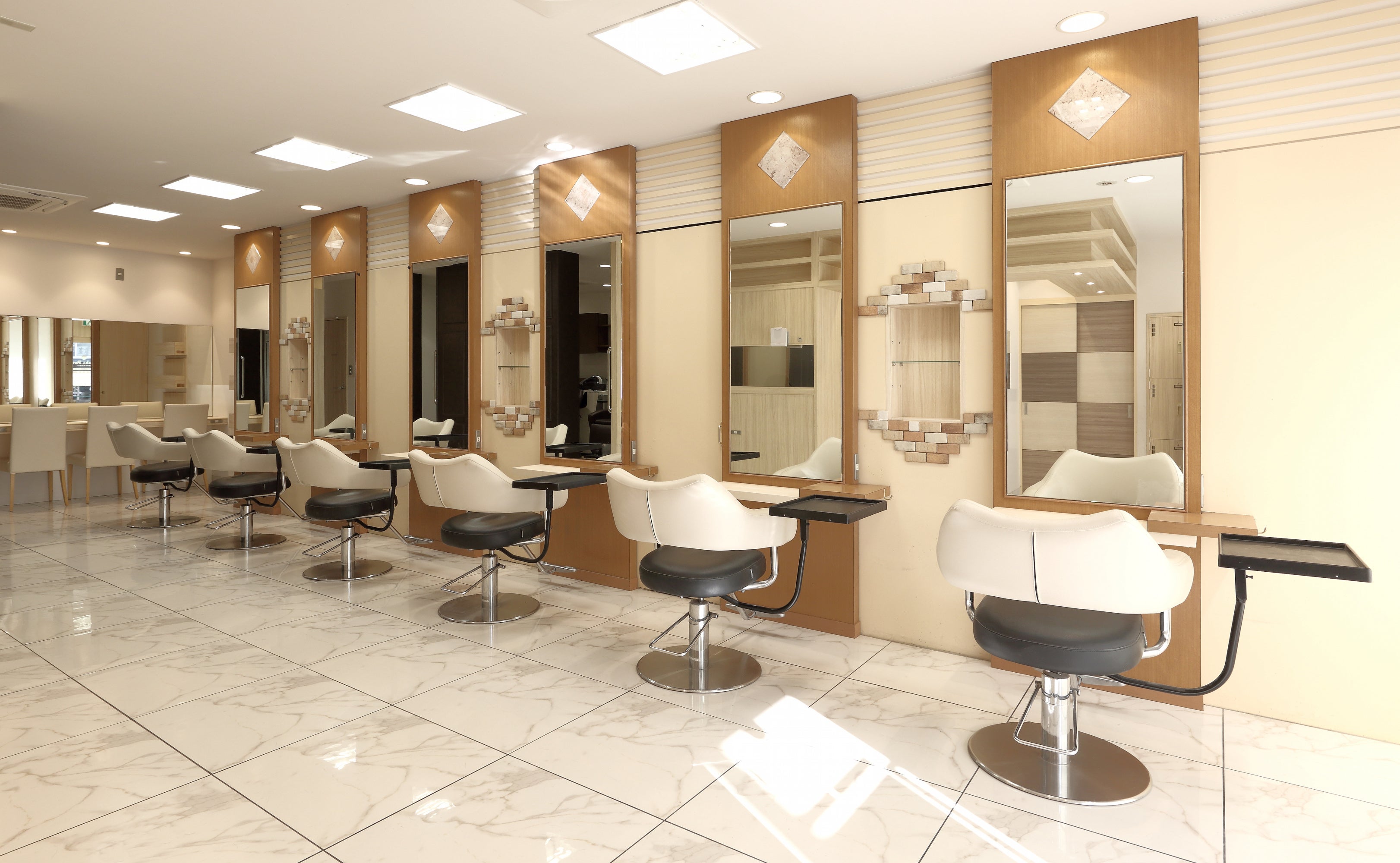 施術後は、セルフブローブースで、自分で髪を乾かしたり、スタイリング剤などを自由に使用できます。スーパー内の一角など、買い物ついでに立ち寄りやすい立地に出店し、関東圏と関西圏に67店舗(※)を展開しています。