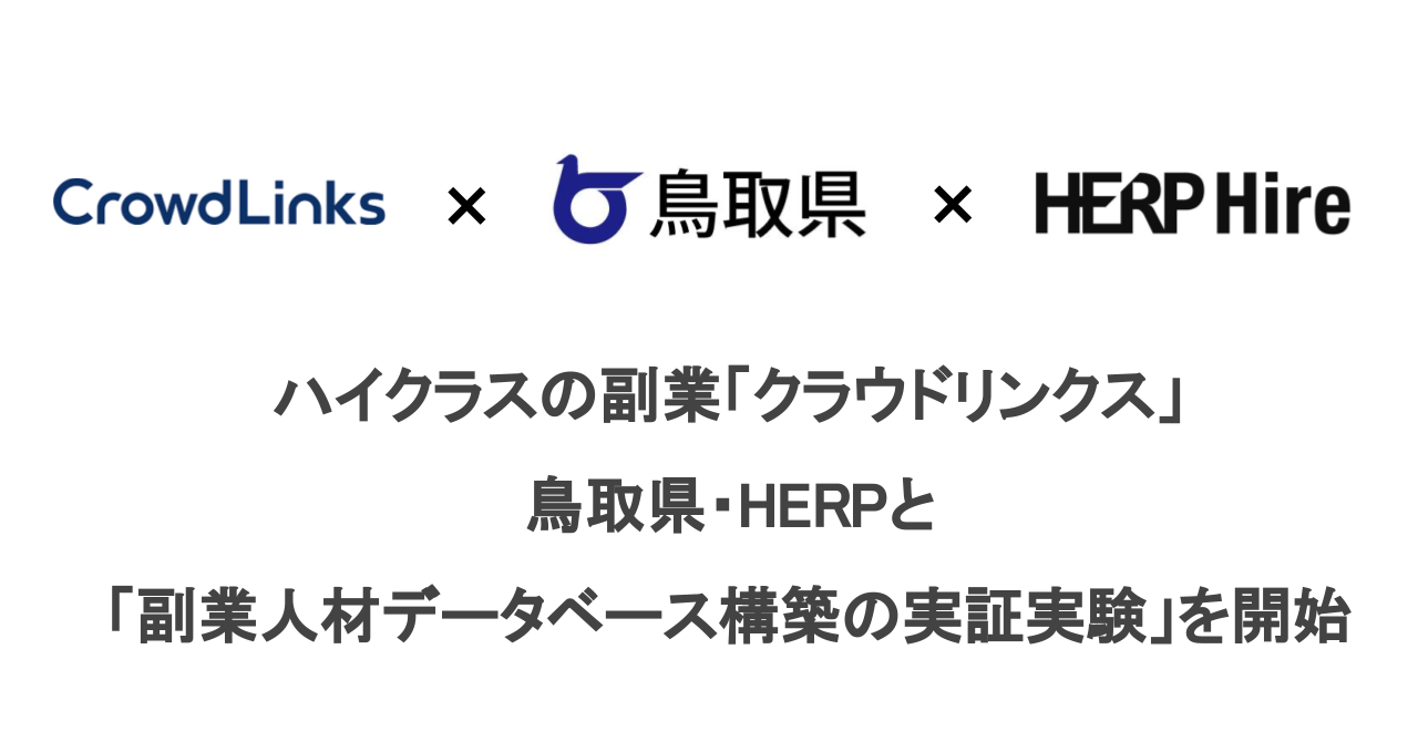 ハイクラスの副業「クラウドリンクス」、鳥取県・HERPと「副業人材データベース構築の実証実験」を開始