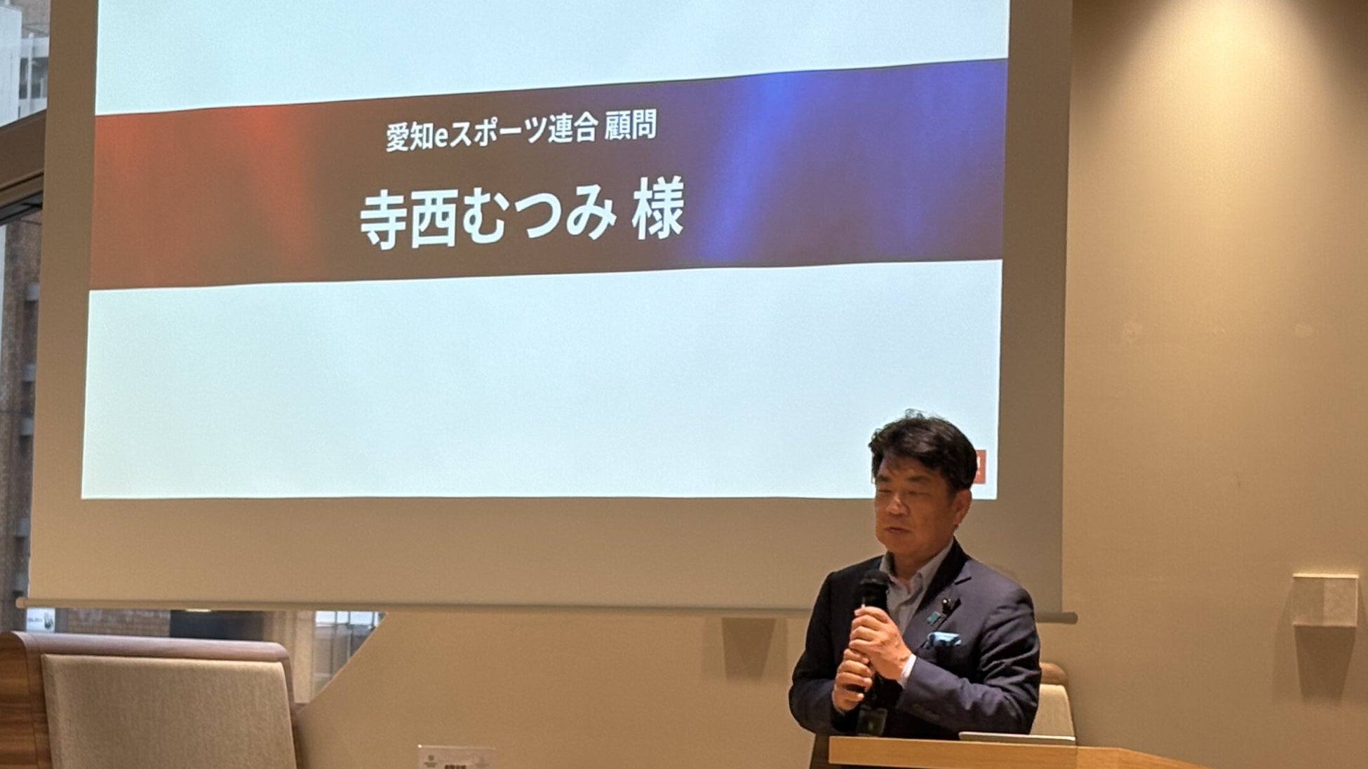 はじめに、愛知eスポーツ連合顧問 寺西 むつみ 氏 より開催のご挨拶をいただきました。