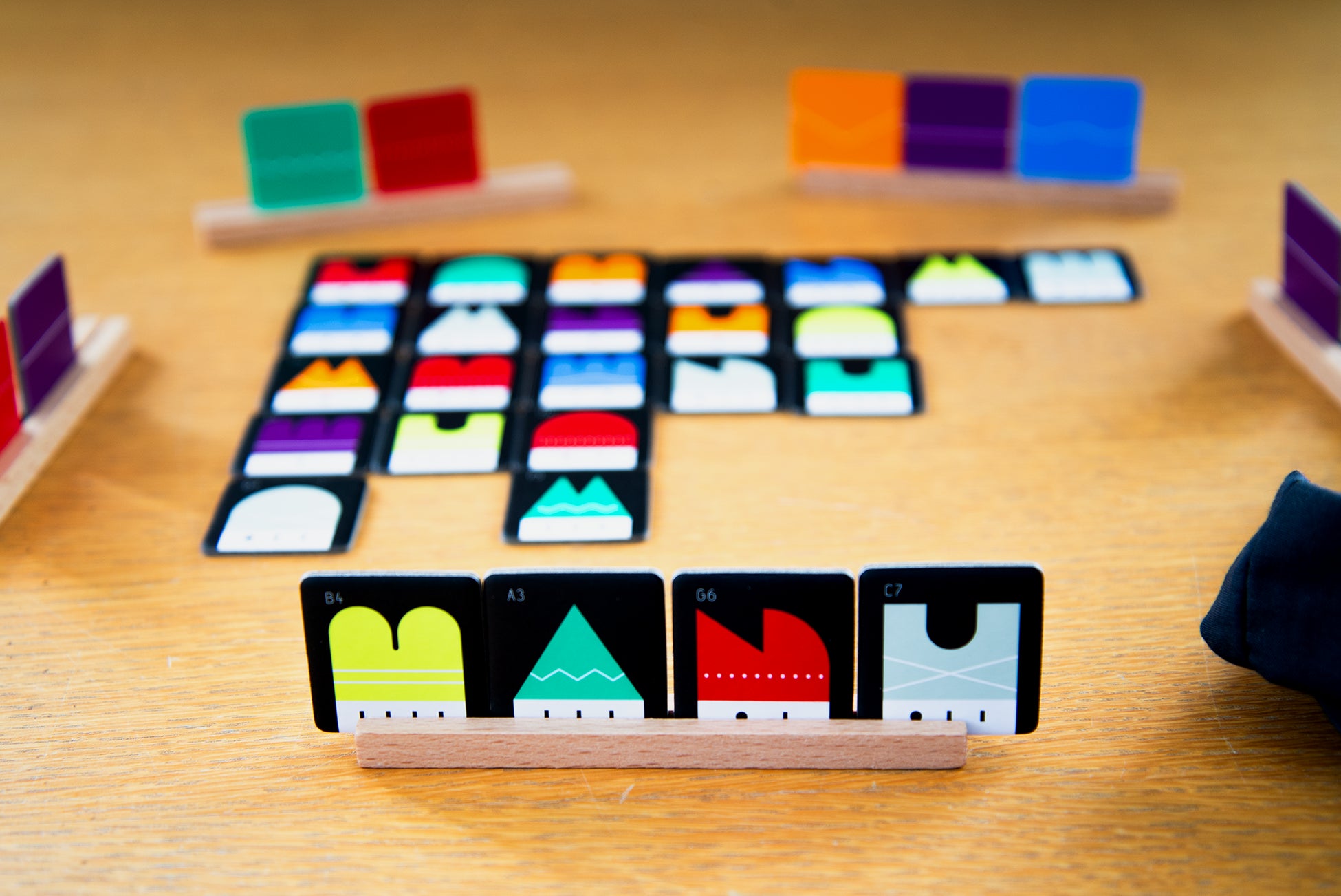 『カブラン』は、1人でパズルとして、2人以上でパズルと駆け引きが楽しめるボードゲーム。同じ並びに同じ形や色がこないようにタイルを配置していくだけなのに、気づくと置けなくなっている!?「ナンプレ」や「クロスワード」などでアタマを使うのが好きな方や、楽しく脳トレしたい方にもおすすめの作品です。