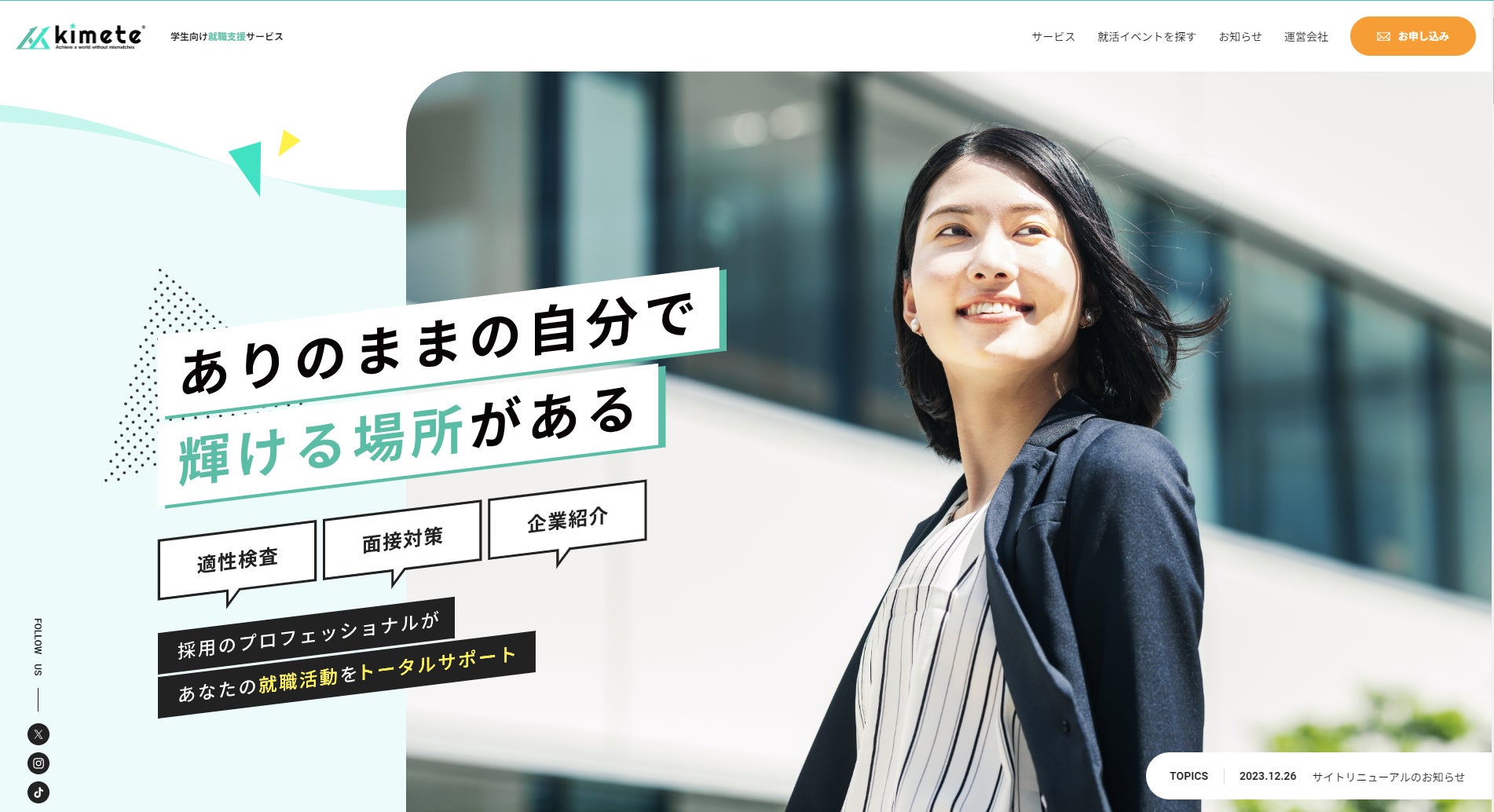 就職支援サービスkimeteの学生向けHPリニューアルのお知らせ