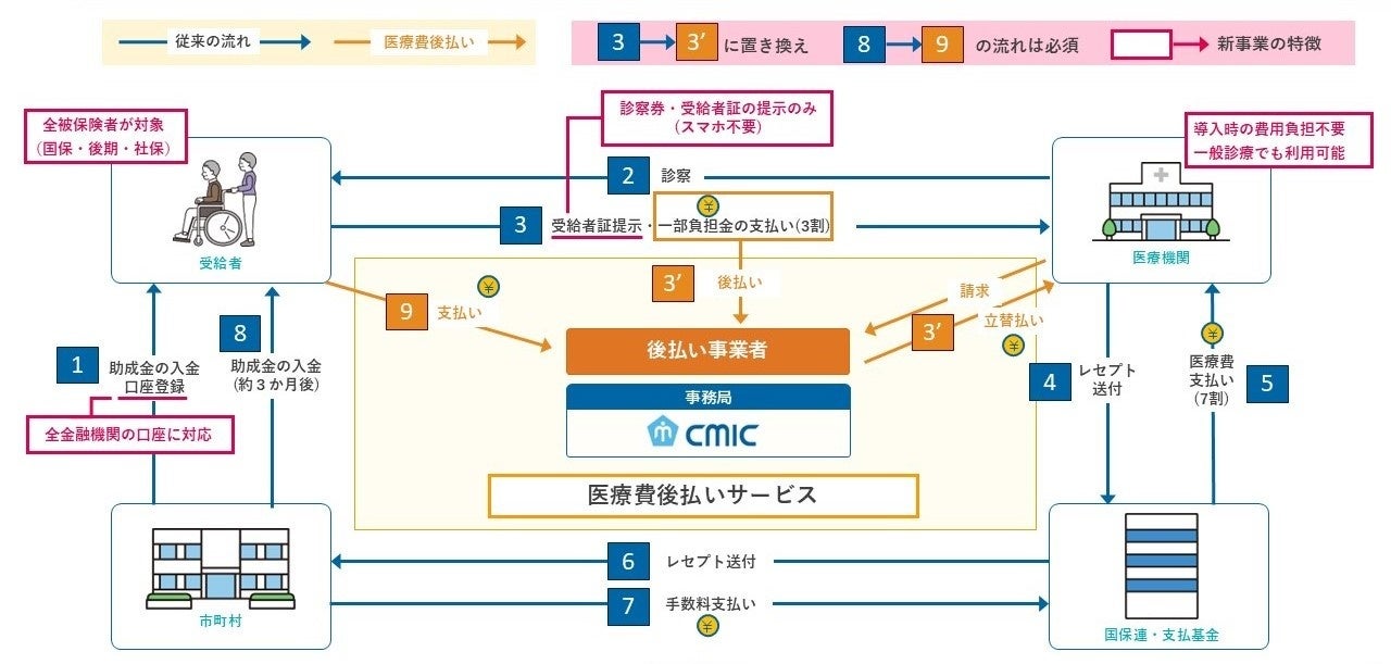CMIC Trustは、これまで培った自治体や医療機関との豊富な協働実績を活かし、新モデル事業の設計・構築、運用までの全体統括を担い、受給者や医療機関の負担軽減と更なる参加拡大に貢献します。