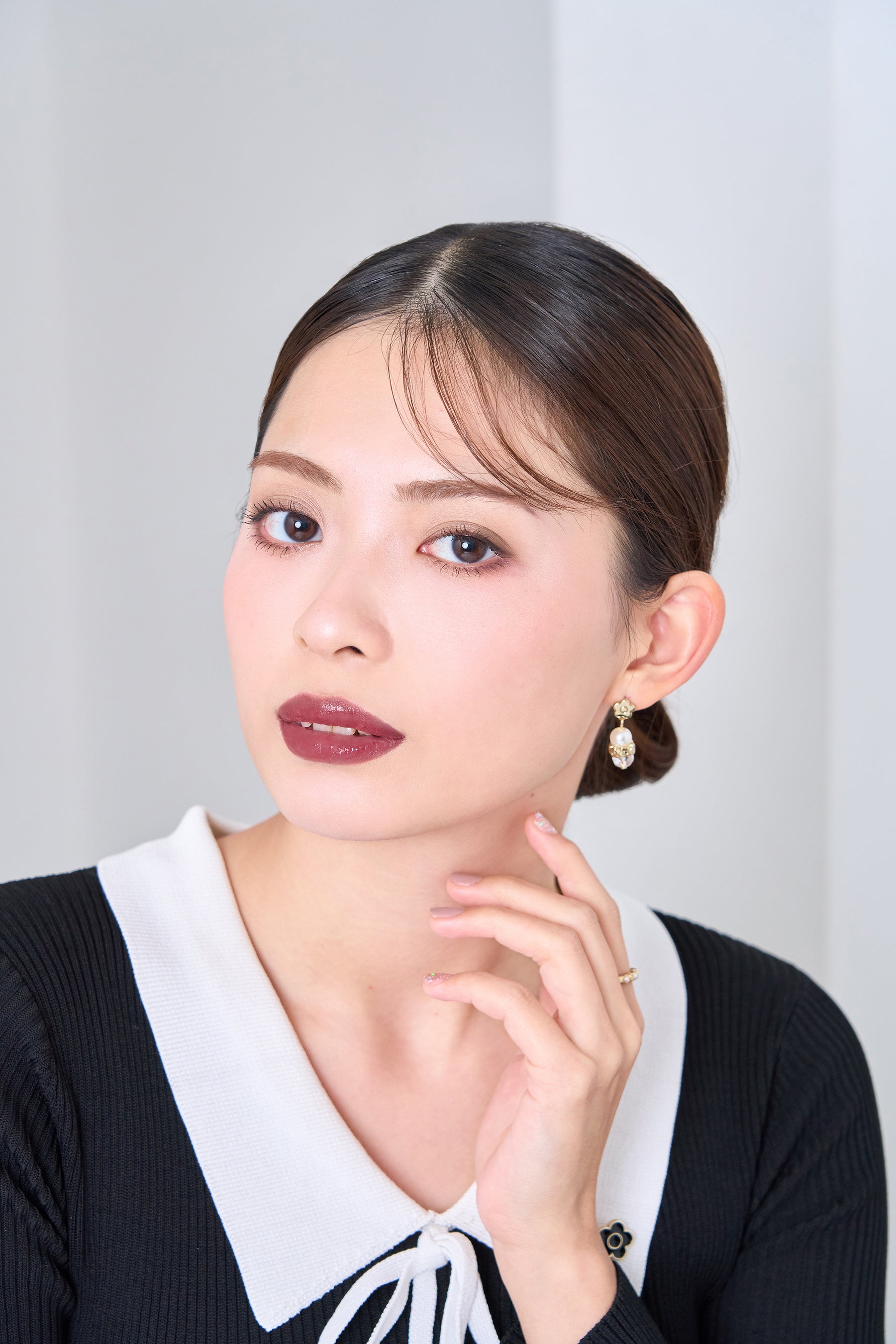 トレンドのボルドーリップを主役にしたノーブルメイク。