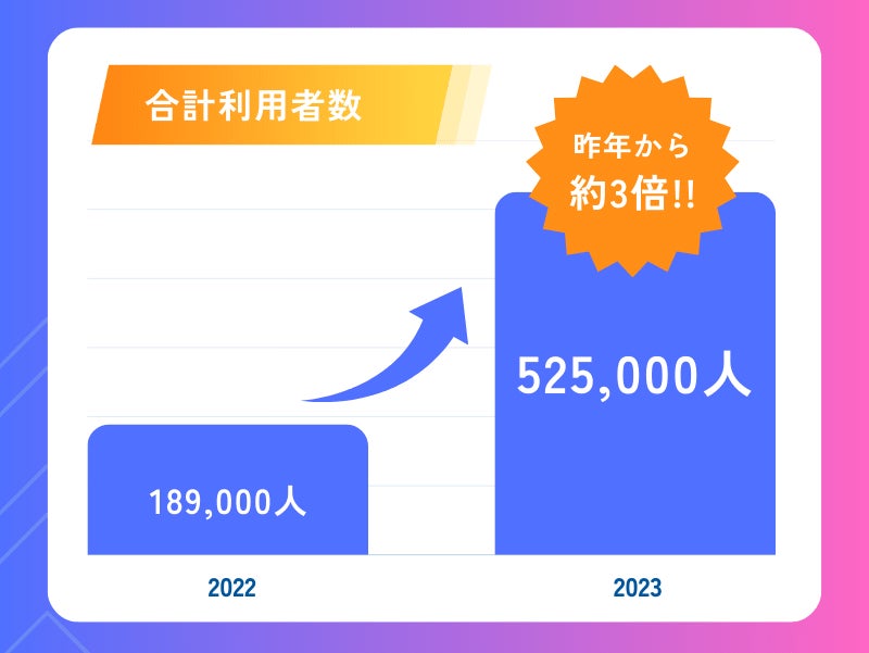 1社での導入で複数店舗で利用される事例もあり、全店舗での会員証の利用者数が525,000人を超え、昨年比の3倍となりました。