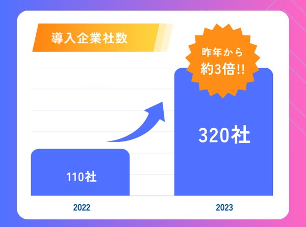 サービス開始から2年で導入企業社数が320社となり、昨年比の3倍の数字となりました。