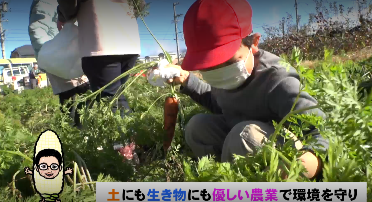 小中学校給食における有機野菜の使用率は、当初は7%であったが、3年目に25%に上昇。ニンジンは、50%使用を目指している。