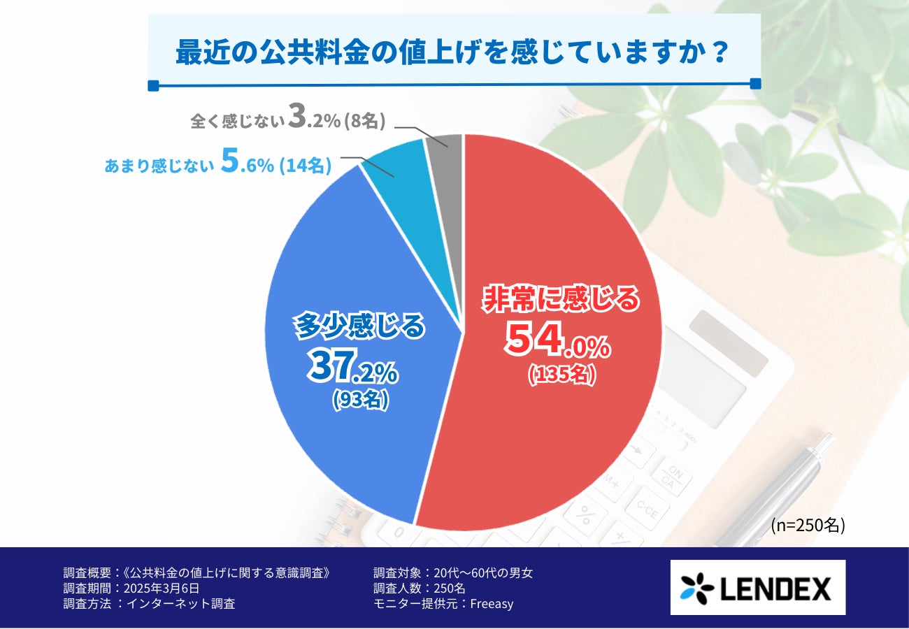 融資型クラウドファンディング「レンデックス(LENDEX)」(https://lendex.jp)を運営する株式会社LENDEX(本社所在地:東京都渋谷区、代表取締役:中村 智)は、20代から60代の男女250名を対象に、「公共料金の値上げに関する意識調査」を実施しました。