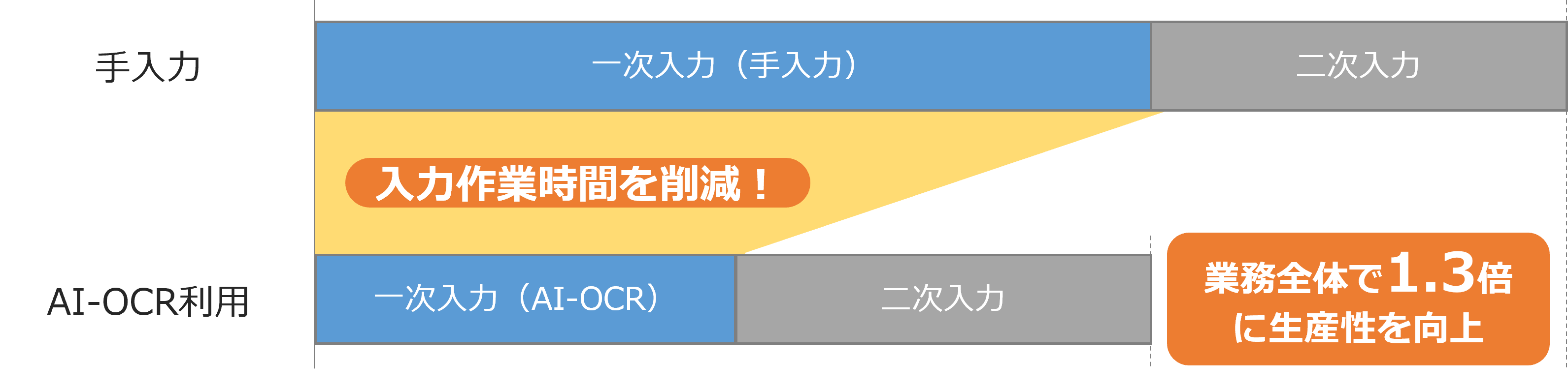 そうした課題を解決すべく、PFUは2023年12月に「DynaEye 給与支払報告書OCR」を販売開始しました。昨年度、本商品を導入いただいたお客様は、1枚の同じ「個人別明細書」に対して、2名がそれぞれデータ入力を行うダブルエントリー方式で業務を行っていましたが、「DynaEye 給与支払報告書OCR」の導入により、一次入力のデータエントリー作業にかかる時間を削減。二次入力と修正作業を含めた業務全体の生産性を1.3倍に向上しました。一次入力をAI-OCRに置き換えて夜間に処理を行うことで、担当者の残業時間削減や人員不足の解消にも役立っています。さらに、個人情報を扱う業務において、PC内で処理を完結でき、情報漏えいのリスクなくご利用いただける点も高く評価いただきました。