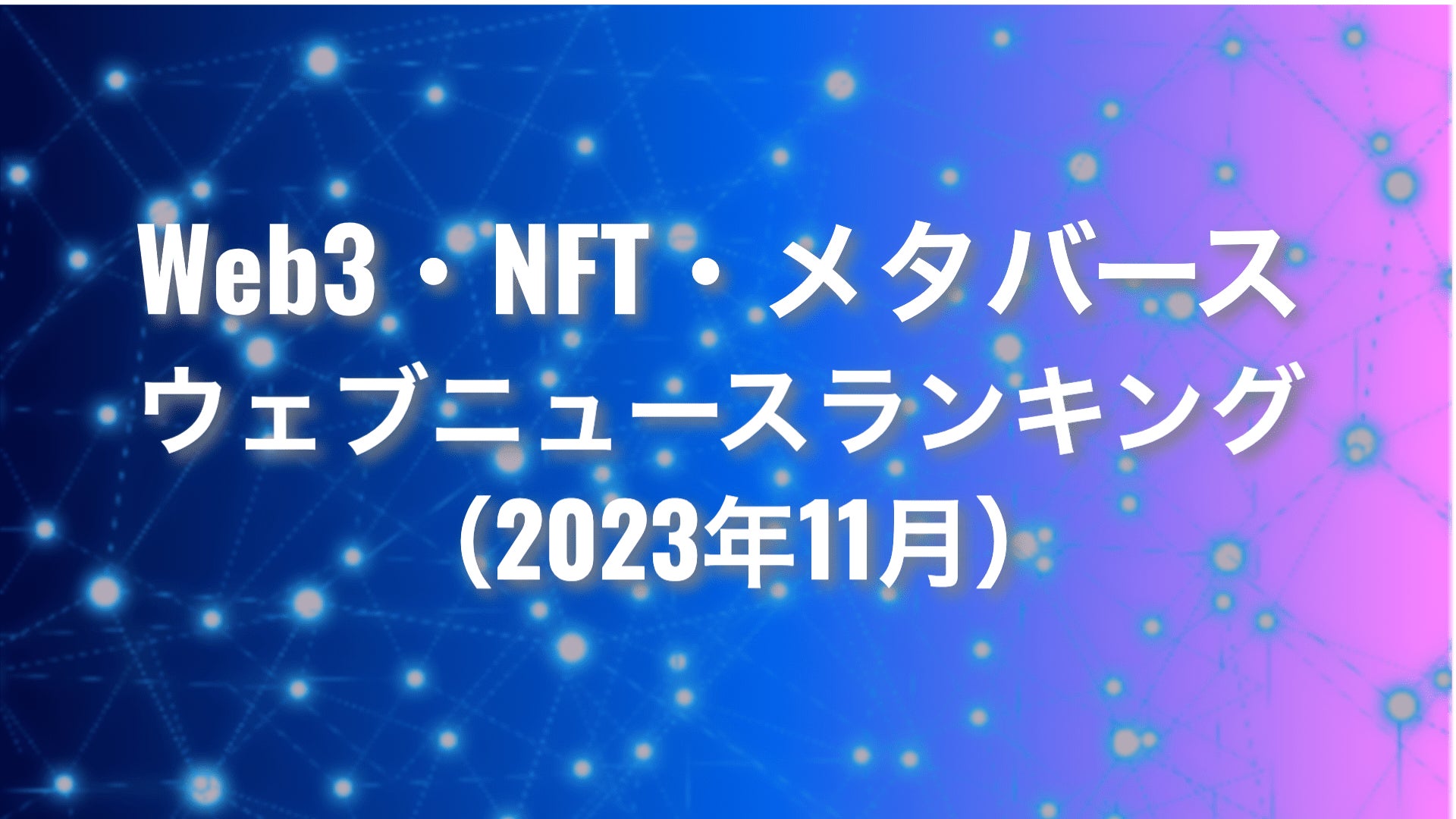 【Qlipperランキング】Web3・NFT・メタバース ウェブニュースランキング(2023年11月)