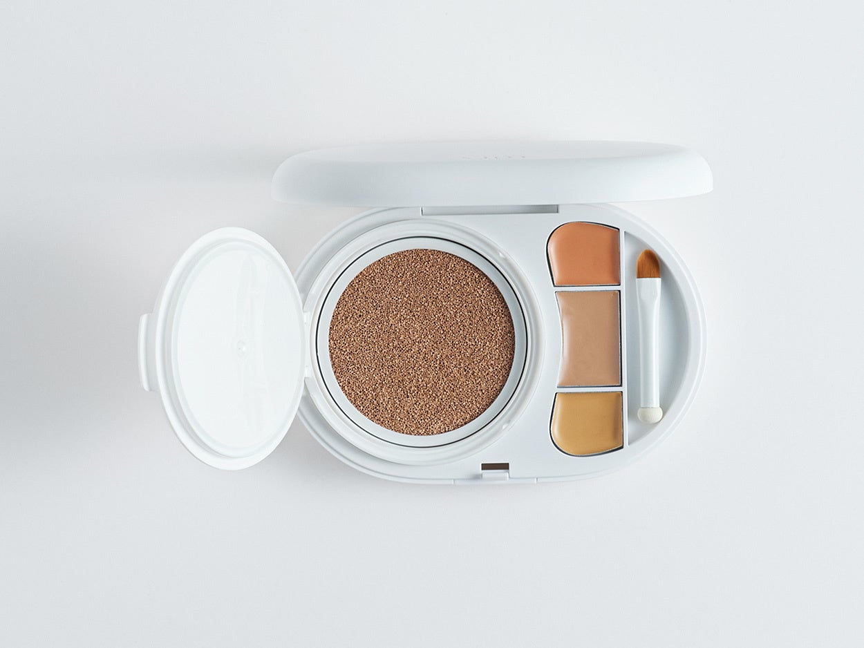 この度発売する「effect like finish foundation kit」は、クッションファンデーションとコンシーラーがセットになった2in1のファンデーションキットです。クッションファンデーションは、セミマットなテクスチャーが素肌にしっかり密着し、高いカバー力でも厚塗り感なく仕上がります。また保湿力に優れた4種類のオイル成分を配合し、うるおいを保ちながら自然な仕上がりを24時間キープします。さらに、クマ、シミ、そばかす、ニキビ跡などの人によって異なる肌悩みも思い通りにカバーできるよう、カラーやテクスチャーをこだわり抜いた3色のコンシーラーがセットになっています。