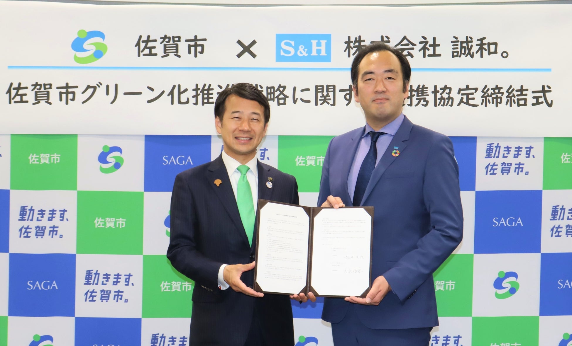 佐賀市(市長:坂井英隆)と株式会社誠和(本社:栃木県下野市、社長:大出浩睦)は、環境を改善しながら持続的に経済が発展する産業・社会の創出のため、「佐賀市グリーン化推進戦略に関する連携協定」を締結しました。