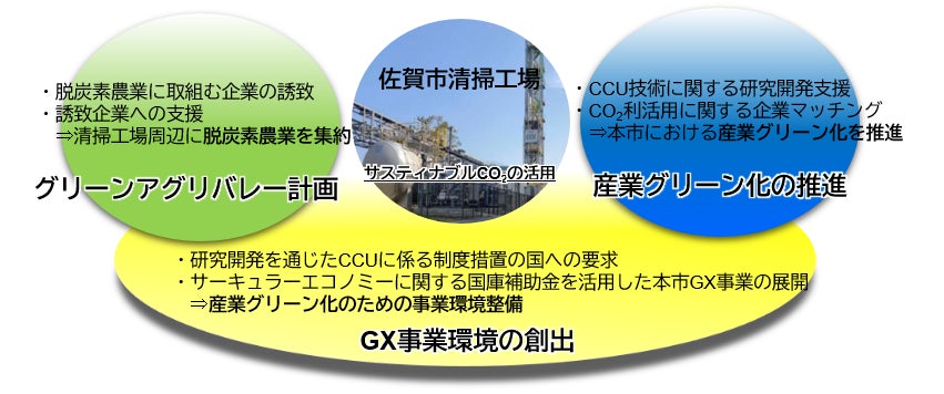 佐賀市はバイオマス産業都市構想を時流に合わせた経済社会システムの変革(GX)に変えていくため、本戦略を2024年11月に策定。3つの施策を展開し、環境を改善しながら、持続的に経済が発展する産業・社会の創出を目指します。