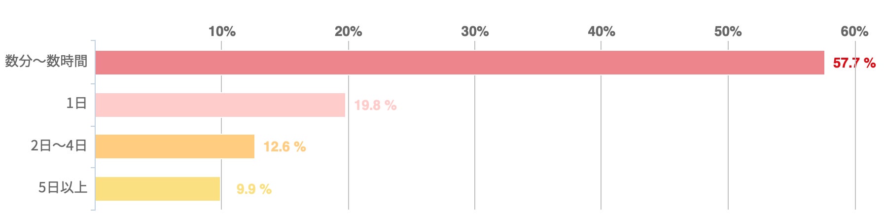 アンケートによれば、プロミスで申し込みをしてから実際にお金を受け取るまでの期間は、「数分〜数時間(57.7%)」が最も多くなった。