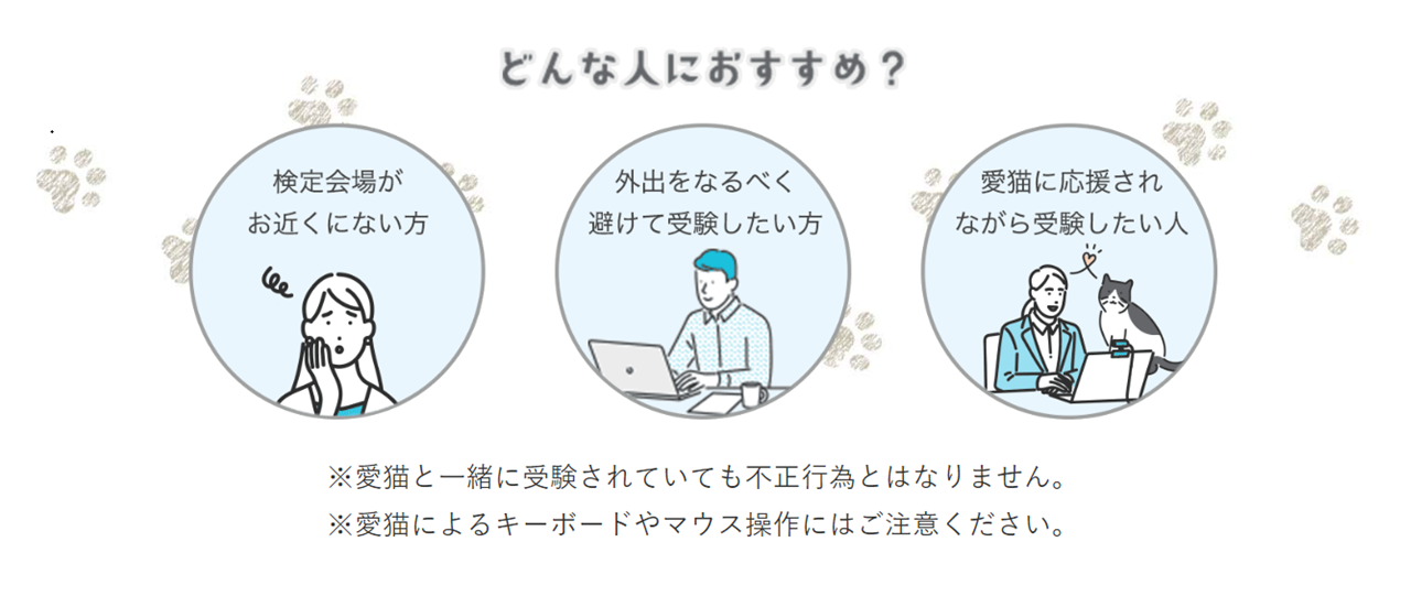 ※オンライン受験ではご自宅から受験いただけますが、愛猫とご一緒に受験されても不正行為とはみなしません。