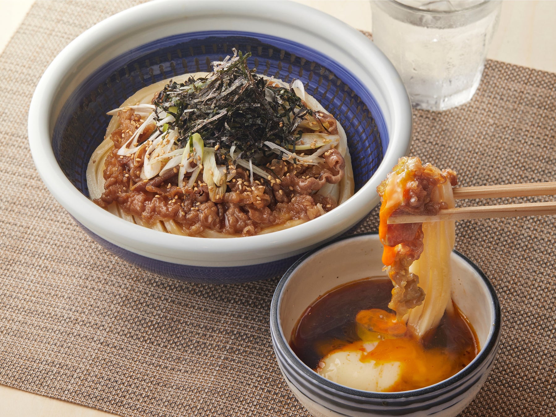 - ≪“がっつり” 焼きたて牛肉の旨みがうどんに絡む『旨辛肉つけうどん』うどんが2玉まで同価格≫