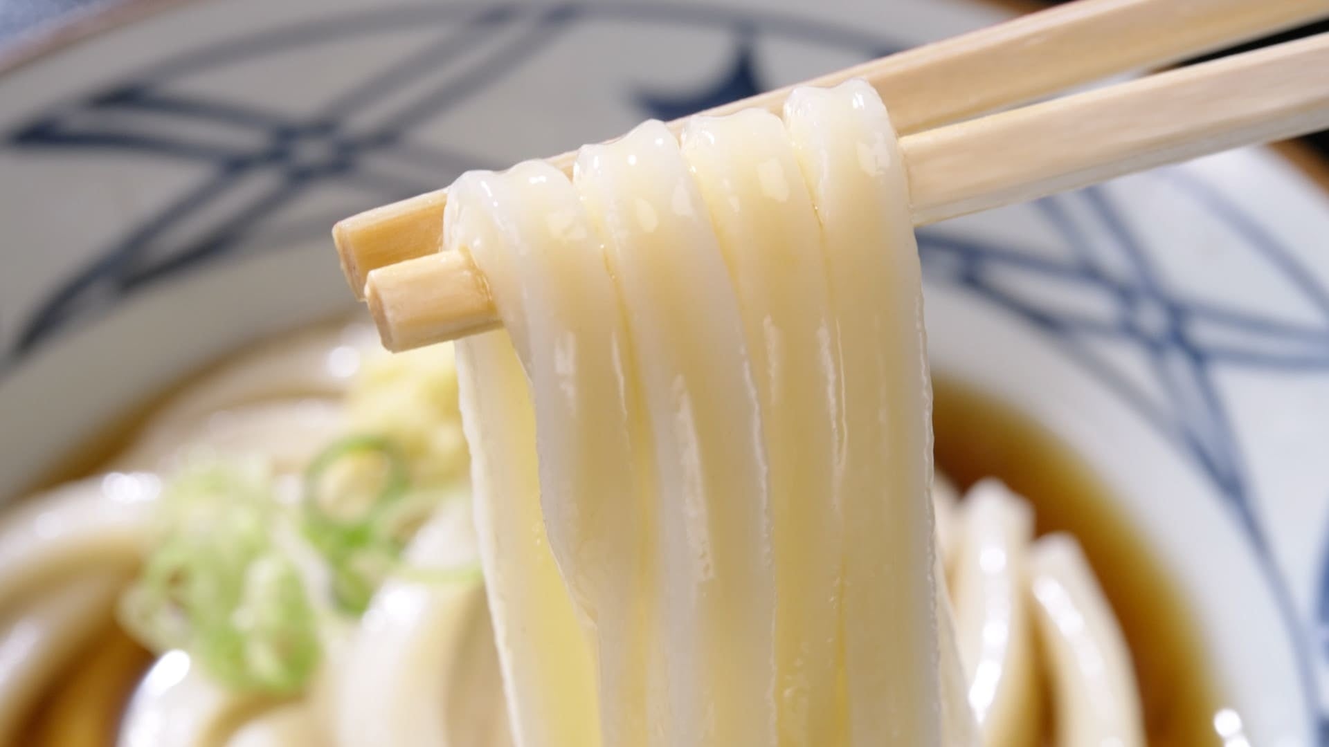 「おいしいうどん」は、徹底的に鮮度にこだわりぬいた「生きている」状態で提供されて初めて実現できる、と丸亀製麺は信じています。丸亀製麺がお届けするうどんは、国内 800 を超えるすべての店で一軒、一軒、手間を惜しまず、毎日、100%国産の小麦粉から打っています。打ち立てのうどんにこだわり、その場で切って、茹でて、作りたてをお客さまに提供しているからこそ、もちもちでおいしい独自の“丸亀食感”をお届けできています。