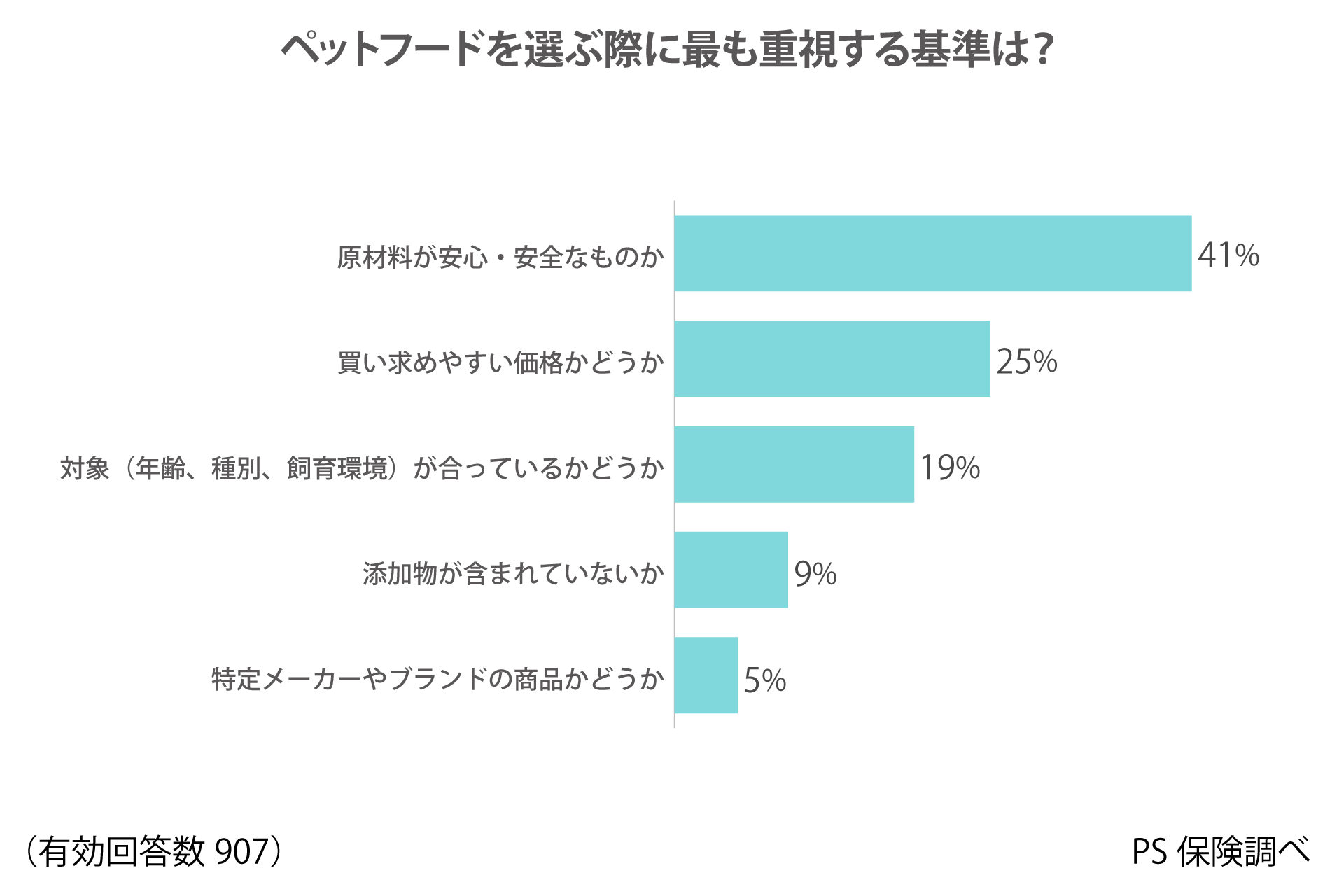 4割超の飼い主が、愛犬や愛猫に与えるペットフード選びで最も重視する基準として「原材料が安心・安全なもの」と回答。