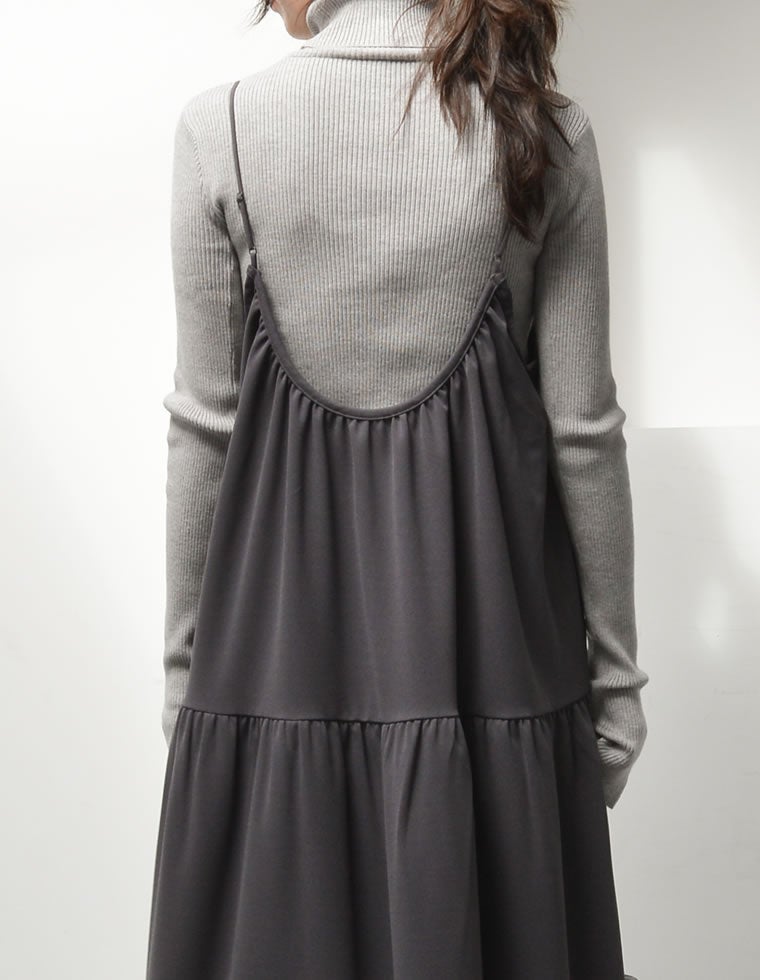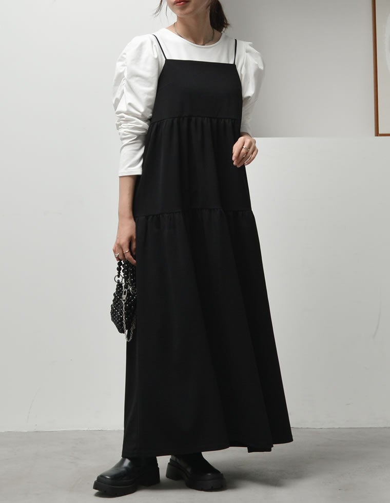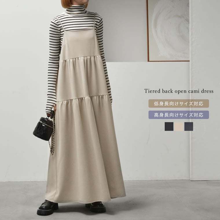[低身長/高身長サイズ有][イージーケア]カットジョーゼットティアードバックオープンキャミワンピース