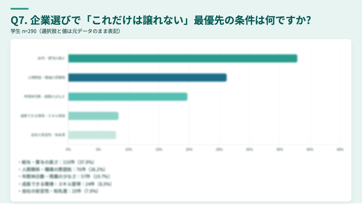 Q. 企業選びで「これだけは譲れない」最優先の条件は何ですか?