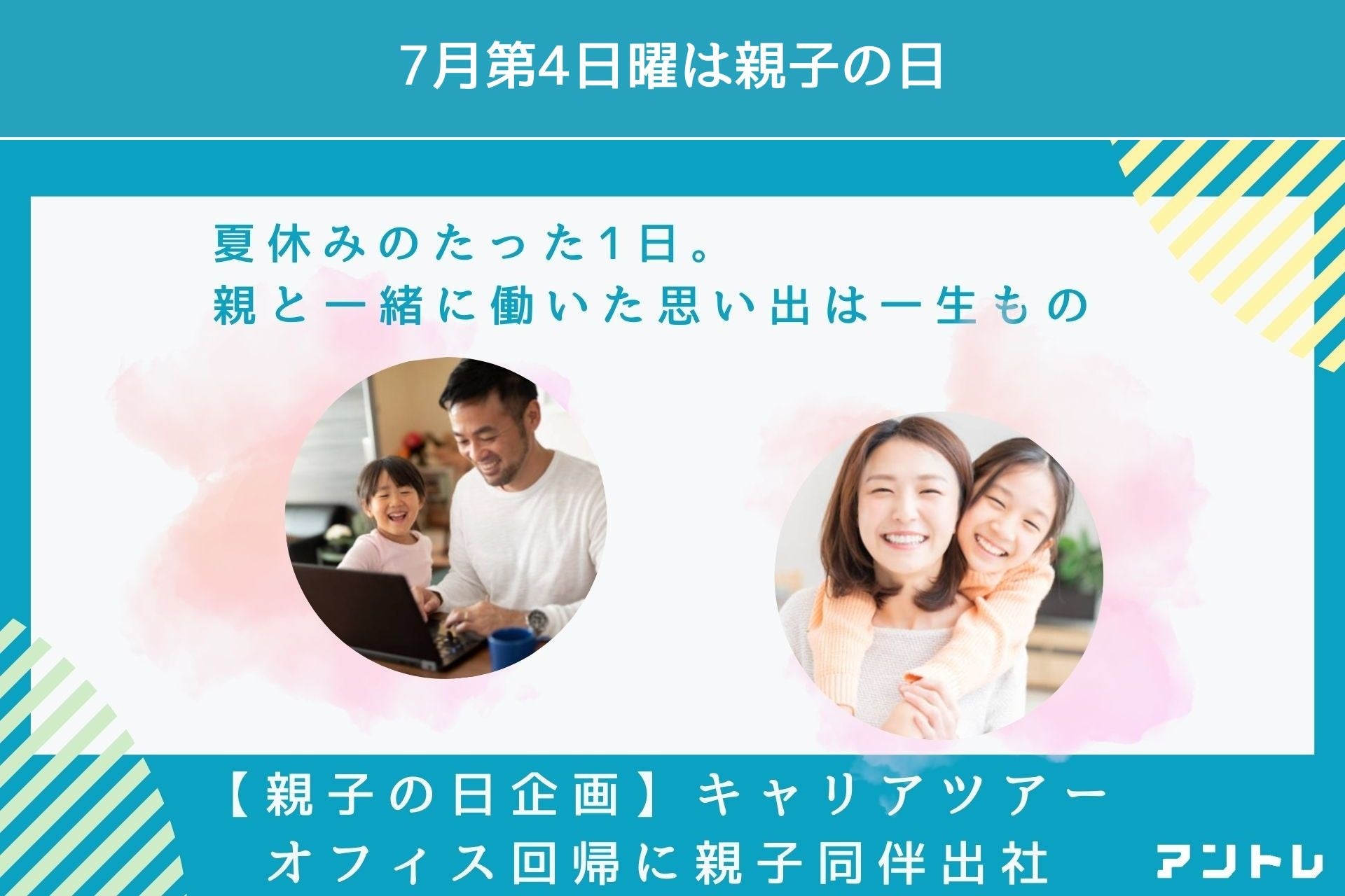 独立・開業支援事業を行う株式会社アントレ(本社:東京都千代田区、代表取締役:上田 隆志)では、7/28の「親子の日」に合わせて、働く喜びを次世代につなげるため、親子同伴出社のイベントを開催します。オフィス回帰で夏休み育児に悩みを抱える自社社員に向けて、親子で参加できるキャリアツアーを企画しましたのでお知らせいたします。