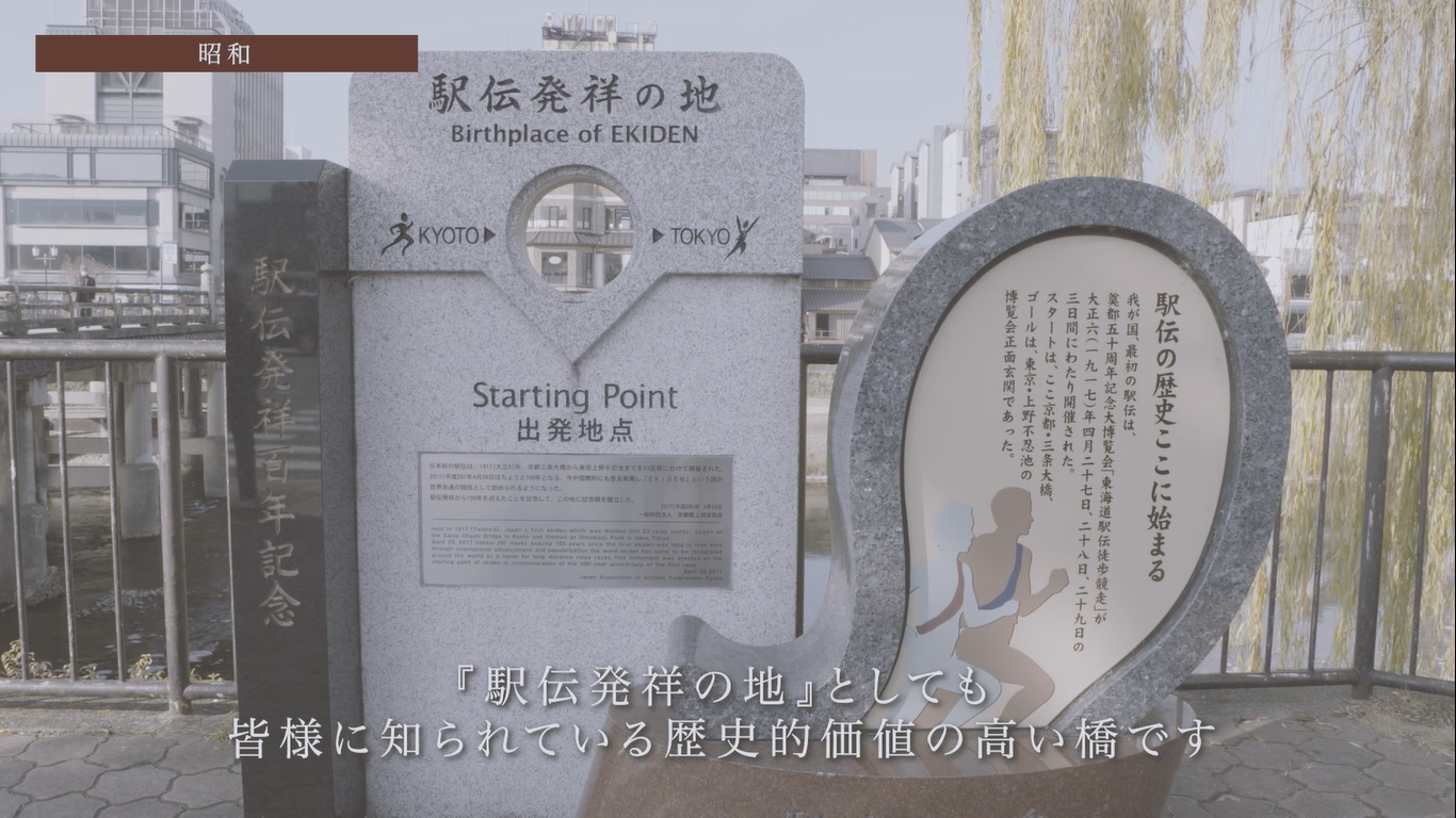 ・日本最初の駅伝は,大正6年4月に三条大橋から東京を目指すものだった。そのことから「駅伝発祥の地」としても知られている。