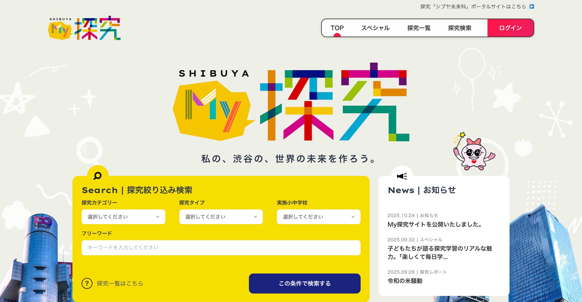 渋谷区教育委員会は、区立小・中学校で展開している探究「シブヤ未来科」で生まれた子どもたちの探究のプロセスと成果を集約し、共有するWebポータル「My探究」サイト( https://my.tankyu-shibuya.com/ )を公開しました。