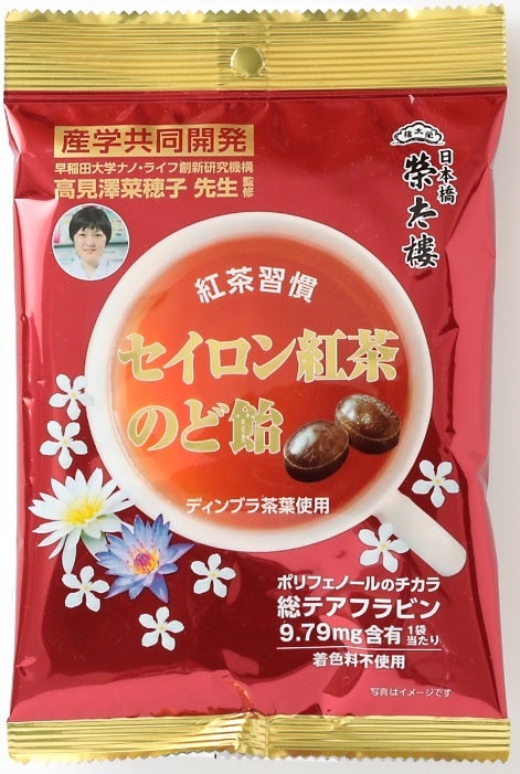 ・商品特長 :早稲田大学ナノ・ライフ創新研究機構 高見澤菜穂子先生監修の産学共同開発商品。榮太樓の伝統製法で紅茶本来の美味しさを活かしつつ、紅茶が持つチカラも兼ね備えたのど飴ができました。