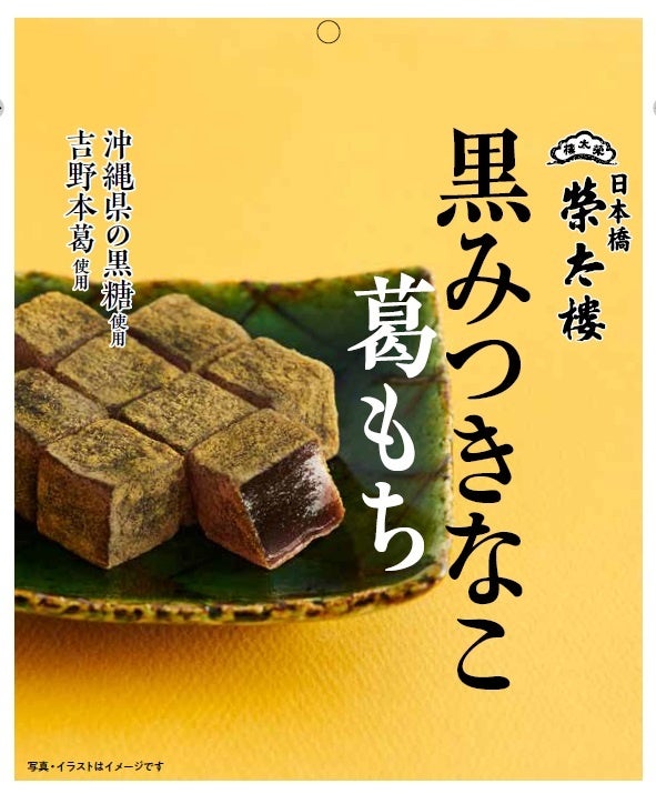 ・商品特長 :吉野本葛を使用した葛もちは、もっちり柔らかな食感。沖縄県の黒糖で作ったコクのある黒みつを練り込み、香ばしいきなこをまぶしました。