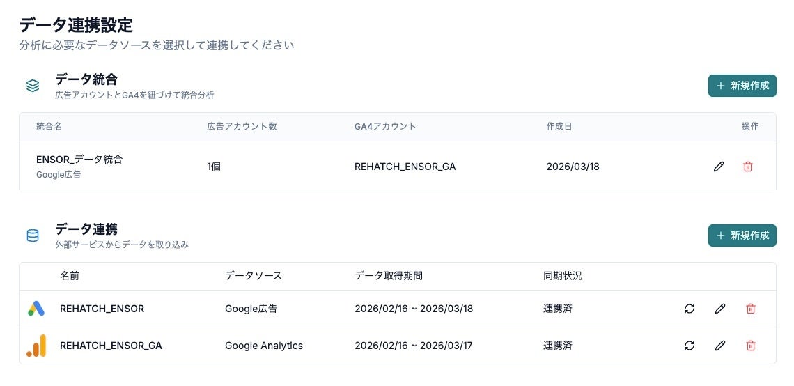 データ連携:広告・CRM・DWHなど複数のマーケティングデータを統合し、分析から施策改善まで活用