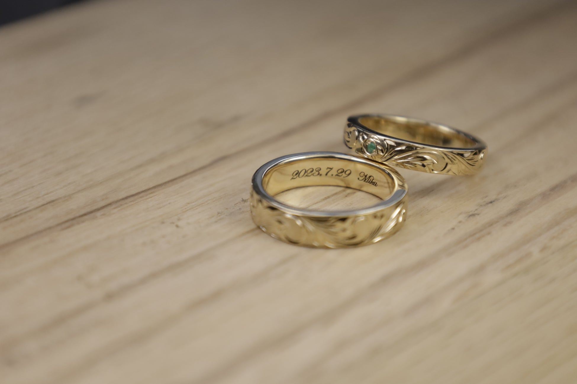 彫留3pcs(A加工)/ミルグレイン(B加工)/カラーコーティング(C加工)/ダイヤモンド(C加工) ※参考:右リング