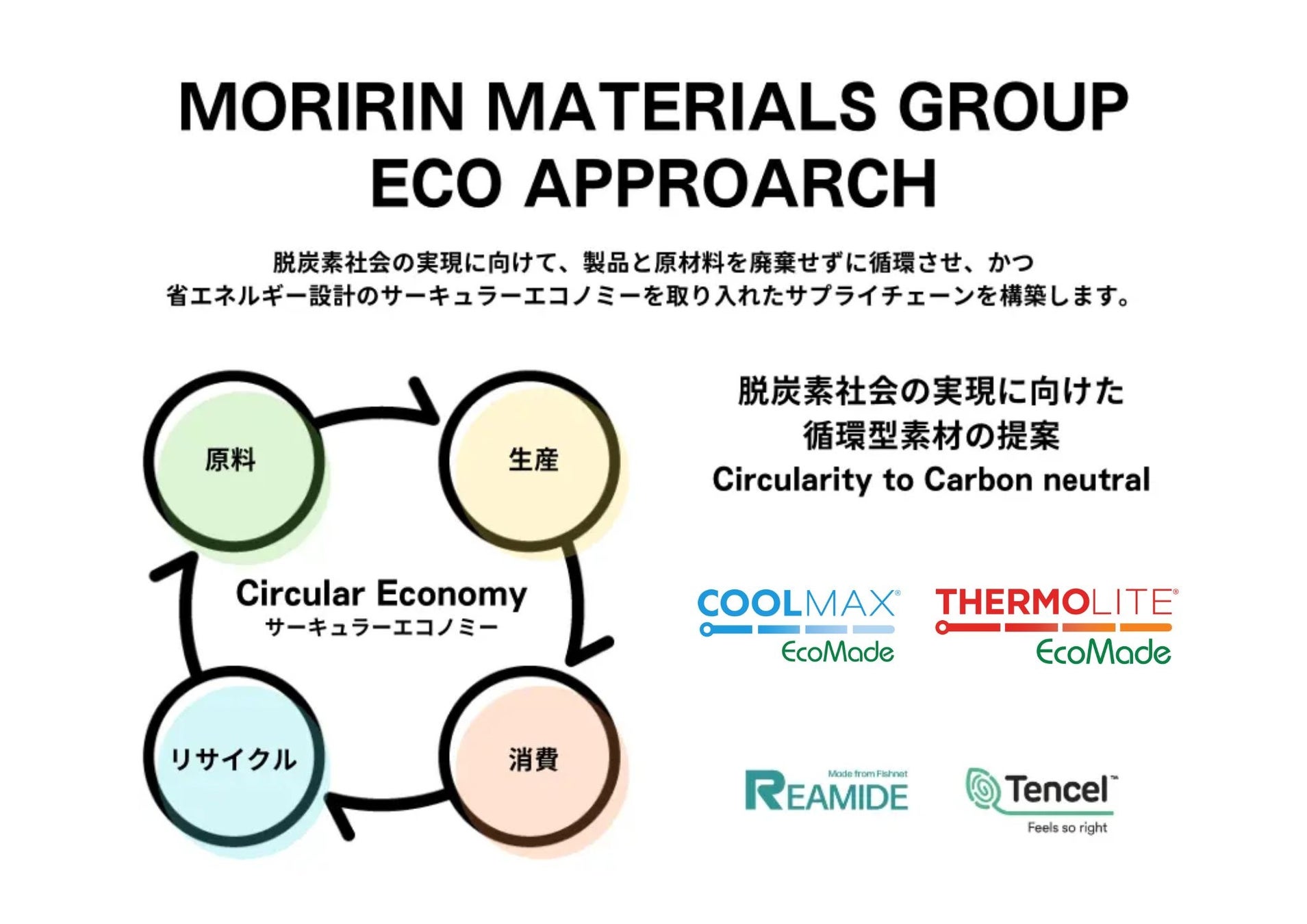 脱炭素社会の実現に向けた循環型素材提案「モリリンマテリアルグループエコアプローチ」の取組みを一層強めます。
