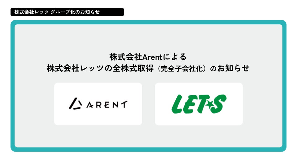 株式会社Arent(本社:東京都港区、代表取締役社長:鴨林広軌、以下「Arent」)は、建設業向け業務ソフト「レッツ原価管理Go2シリーズ」を展開する株式会社レッツ(本社:宮城県大崎市、代表取締役:山崎教雄)がArentグループに参画することになりましたのでお知らせいたします。