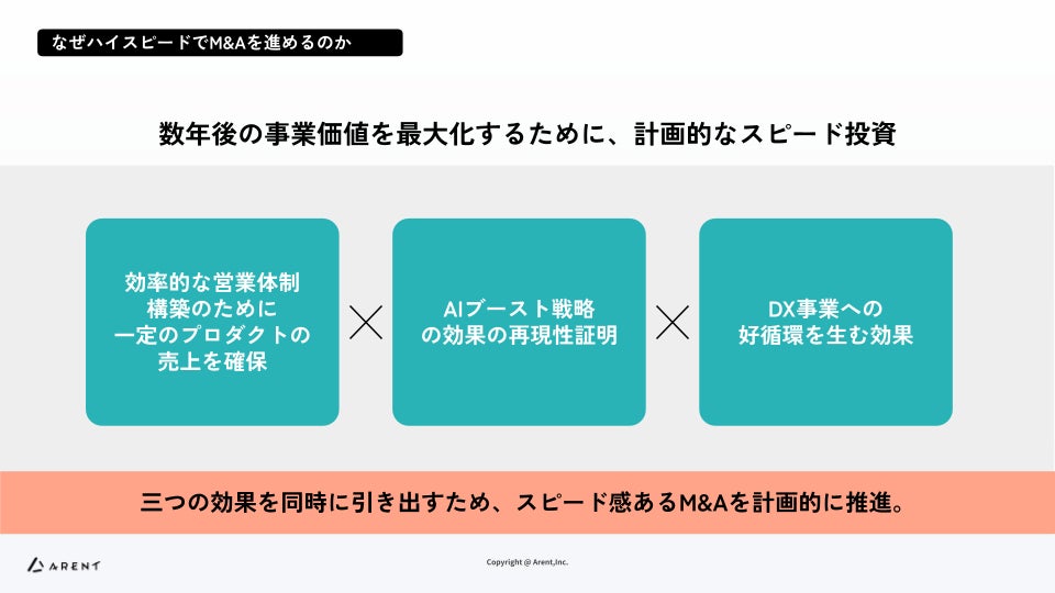 また、バックオフィスは市場規模が大きく、同領域へのカバー拡大はArentグループの事業価値向上に直結します。本件は業務データ全体を「アプリ連携型」で最適化する構想をさらに一歩進めるものです。