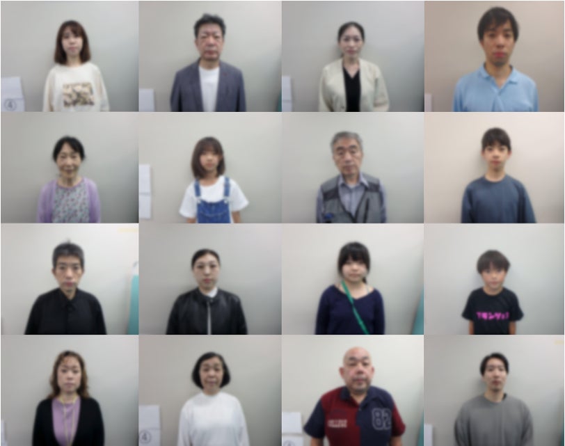 今回、200名の日本人モデルに対して、データ取得およびAI開発への利用に関する同意を得た上で顔画像の撮影を実施しました。日本人の人口分布に近い割合で幅広い年代をアサイン、角度や表情、装飾品の着用有無などのパターンも用意。計22,800枚の画像が含まれています。