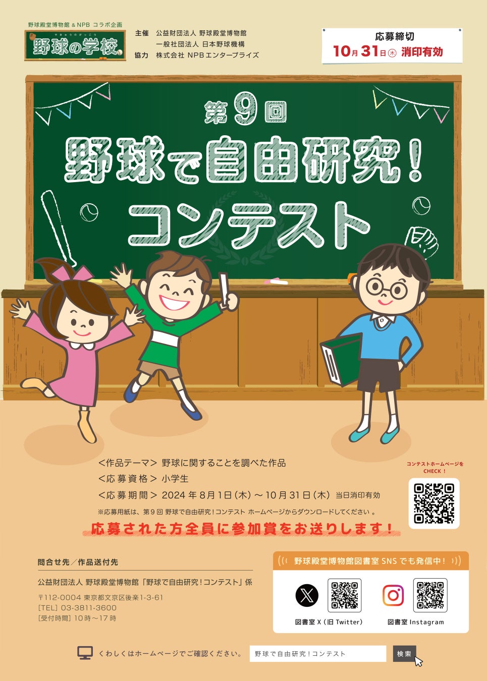「第9回 野球で自由研究!コンテスト」開催決定!!