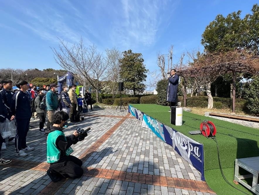 アビスパ福岡は、プレミアム・ユニフォーム・パートナーである『新日本製薬 株式会社』のご協力のもと、2023明治安田生命J1リーグ第5節湘南ベルマーレ戦(3月19日(日)14:00キックオフ/ベスト電器スタジアム)の試合前に、今年からスタートした社会連携プロジェクト『FUKUOKA TAKE ACTION!』のシャレン活動の一環として、ベスト電器スタジアム周辺の清掃活動「わたしたちのホームを美しく!Fukuoka クリーン大作戦」を開催致しました。
