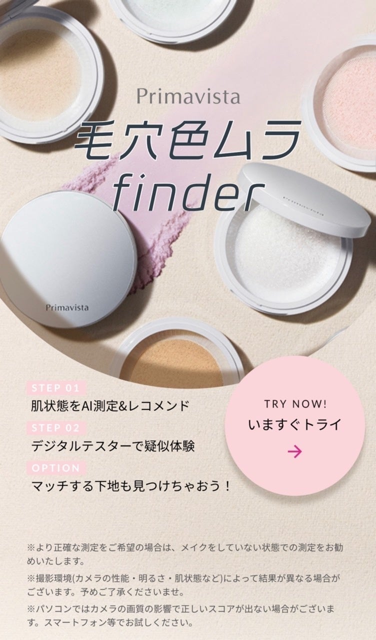 日本・東京(2022年10月24日)、AIおよびAR技術を活用したソリューションサービスを提供し、美容業界とファッション業界でデジタルトランスフォーメーション(DX)を奨励するパーフェクト株式会社(以下、パーフェクト)は、花王株式会社のベースメイクブランド「プリマヴィスタ」から発売された、毛穴レスが続く“持久型フェイスパウダー”「ポアレスフィクサー」に関するオンラインコンテンツ「毛穴色ムラfinder」に、AI肌診断とARメイク機能を導入したことを発表致します。