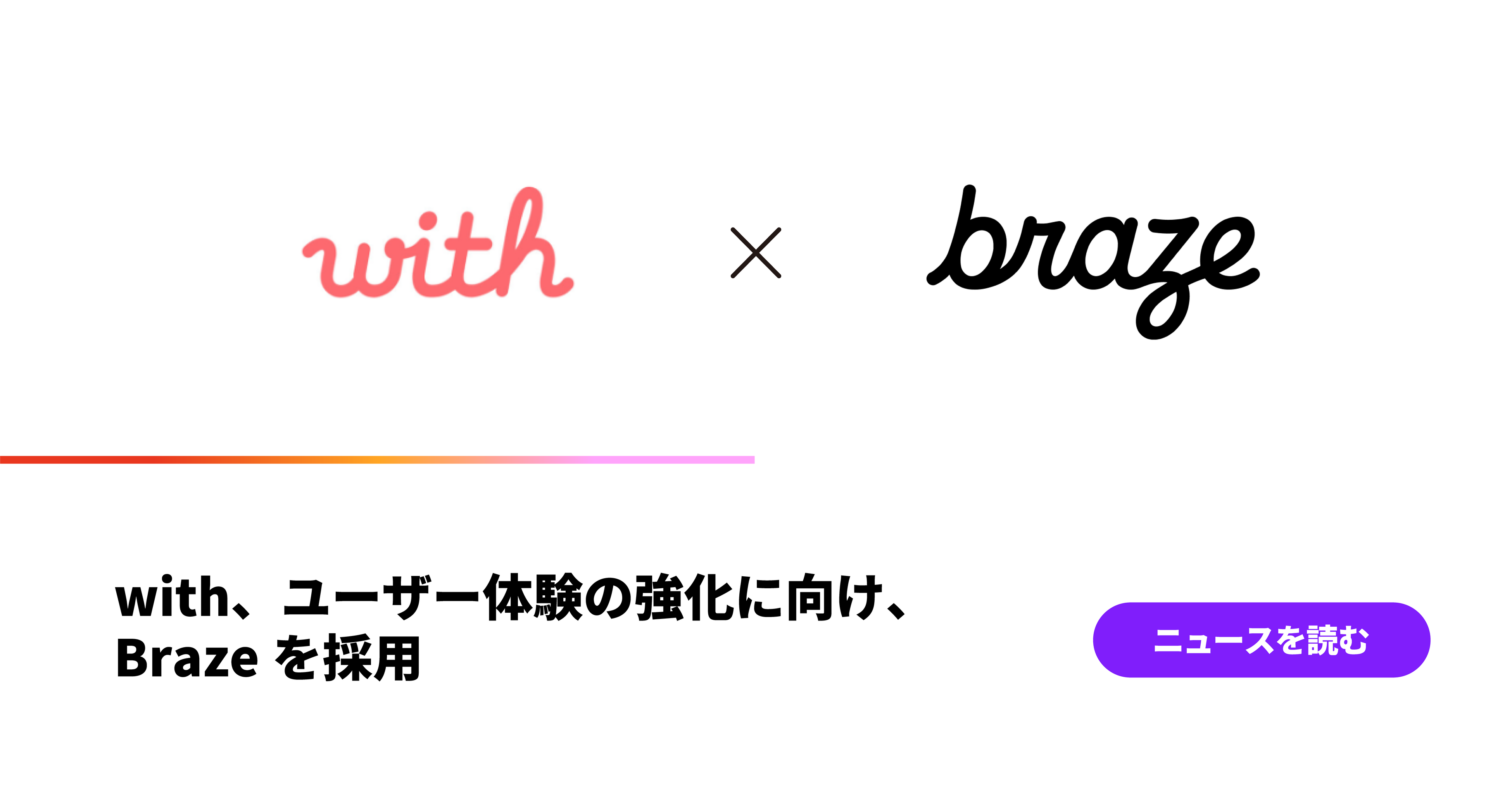 カスタマエンゲージメントプラットフォームのリーダーである Braze株式会社(読み方:ブレイズ、本社:東京都港区、代表取締役社長:水谷 篤尚、以下「Braze」)は、20代向けの価値観重視のマッチングアプリ 「with」を展開する株式会社with(本社:東京都渋谷区、代表取締役CEO:五十嵐昭人、以下「with」)がユーザー体験の強化を目的にBrazeを採用したことを発表しました。