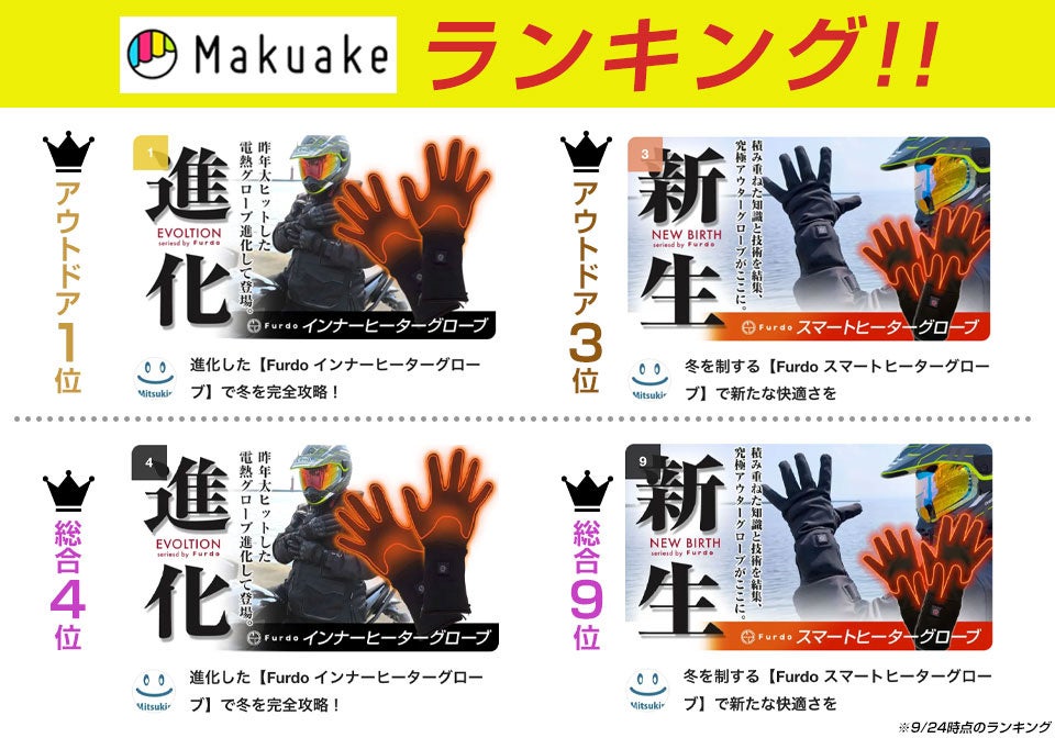 加えて、全カテゴリーを含む総合ランキングでも4位に入賞するという素晴らしい成績を収めました。これらの結果は、Furdo電熱グローブシリーズが、多くのユーザーにとって価値ある製品であることを示しています。