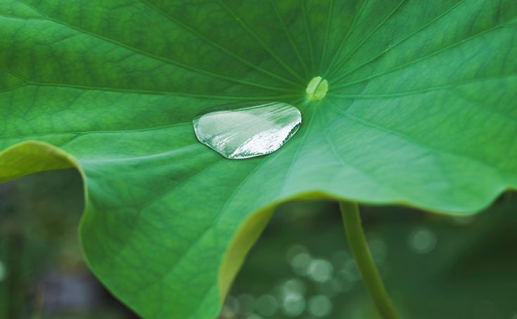 POINT3. 接触角150° 滑落角15°で水が丸まる、転がる